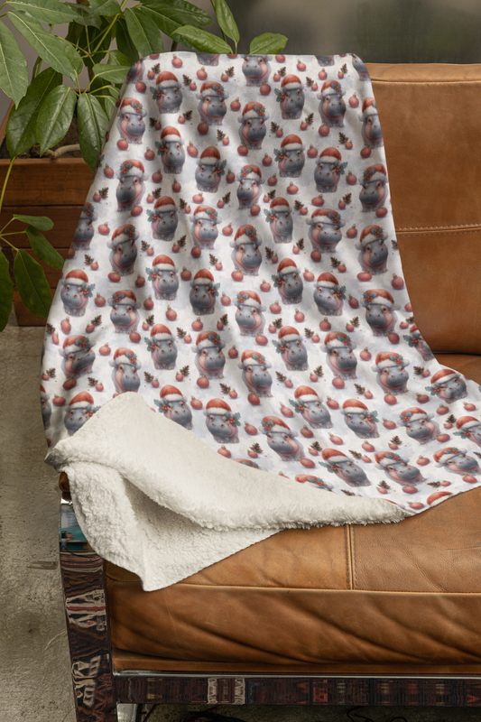 Jolly Hippo Christmas Sherpa Blanket