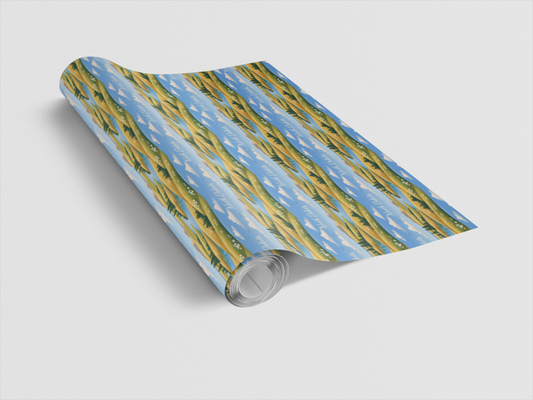 Really beautiful wrapping paper! High quality, thick, sturdy and rich colors - the type of paper used by high-end stores. Shipping was relatively fast (probably faster when it isn't holiday time). I like the way it isn't wound around a cardboard tube - the paper is heavy enough to support itself.