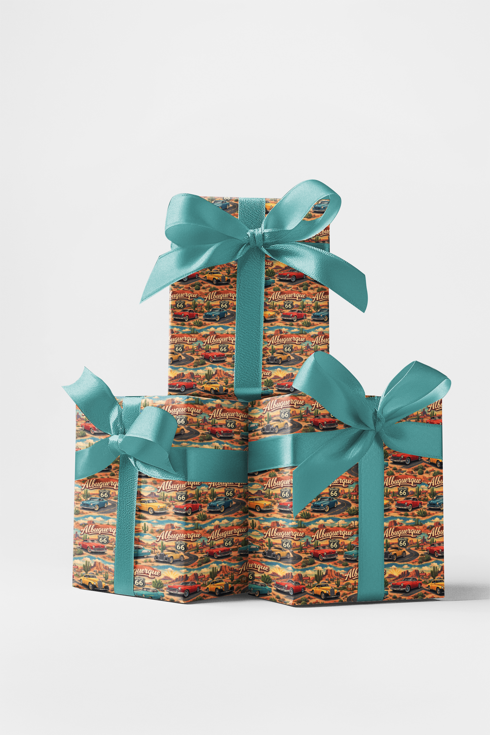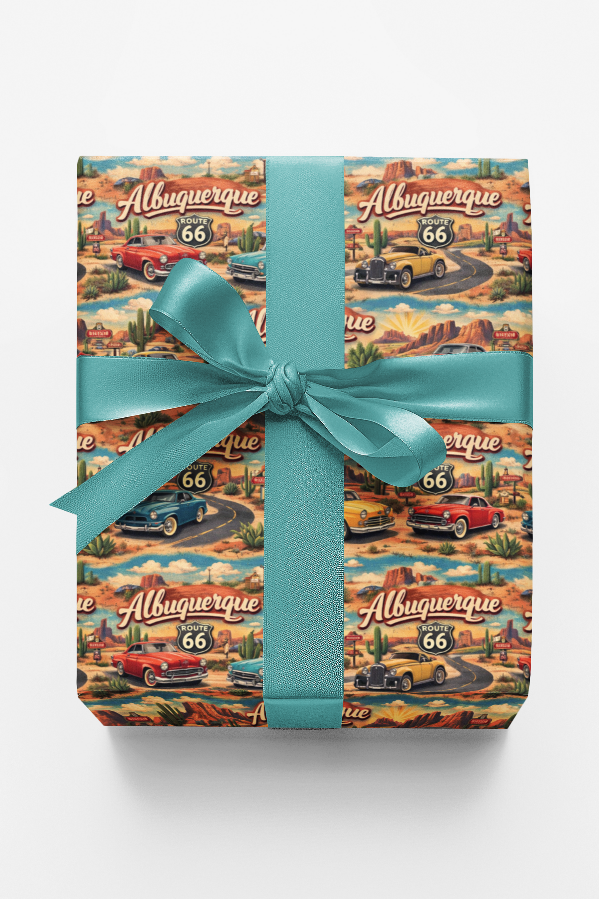 Sun-soaked, nostalgic, and full of open-road freedom, Albuquerque Old Route 66 celebrates the timeless spirit of the Southwest. Classic vintage cars cruise along historic Route 66, framed by desert mesas, towering cacti, and glowing New Mexico sunsets. The iconic Route 66 shield stands proudly beside retro “Albuquerque” script, capturing the golden age of American road trips. Warm desert reds, turquoise skies, sandy neutrals, and pops of vintage car color create a bold yet balanced palette that feels adventurous and authentically Southwestern. This repeating pattern is a tribute to wide highways, roadside diners, and the romance of the American West — perfect for travelers, car lovers, and Route 66 dreamers.