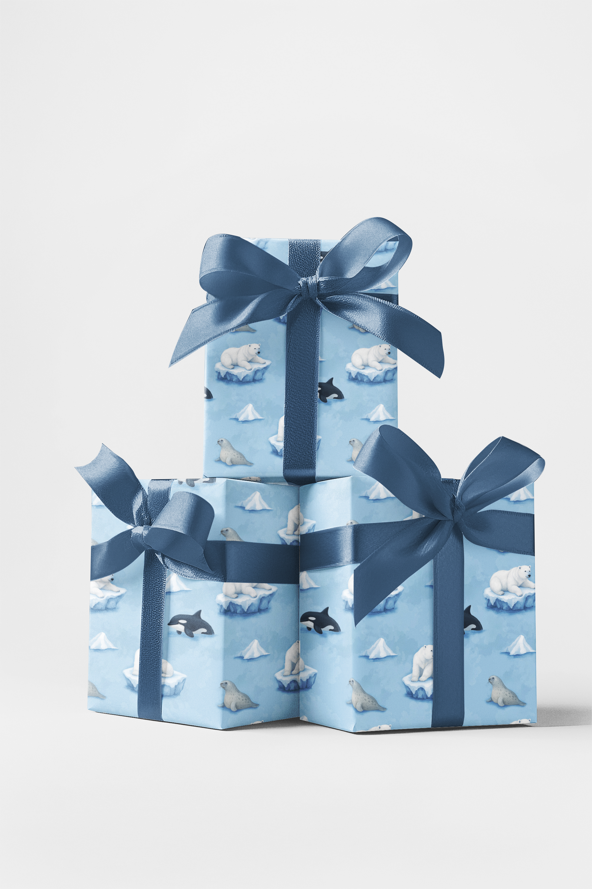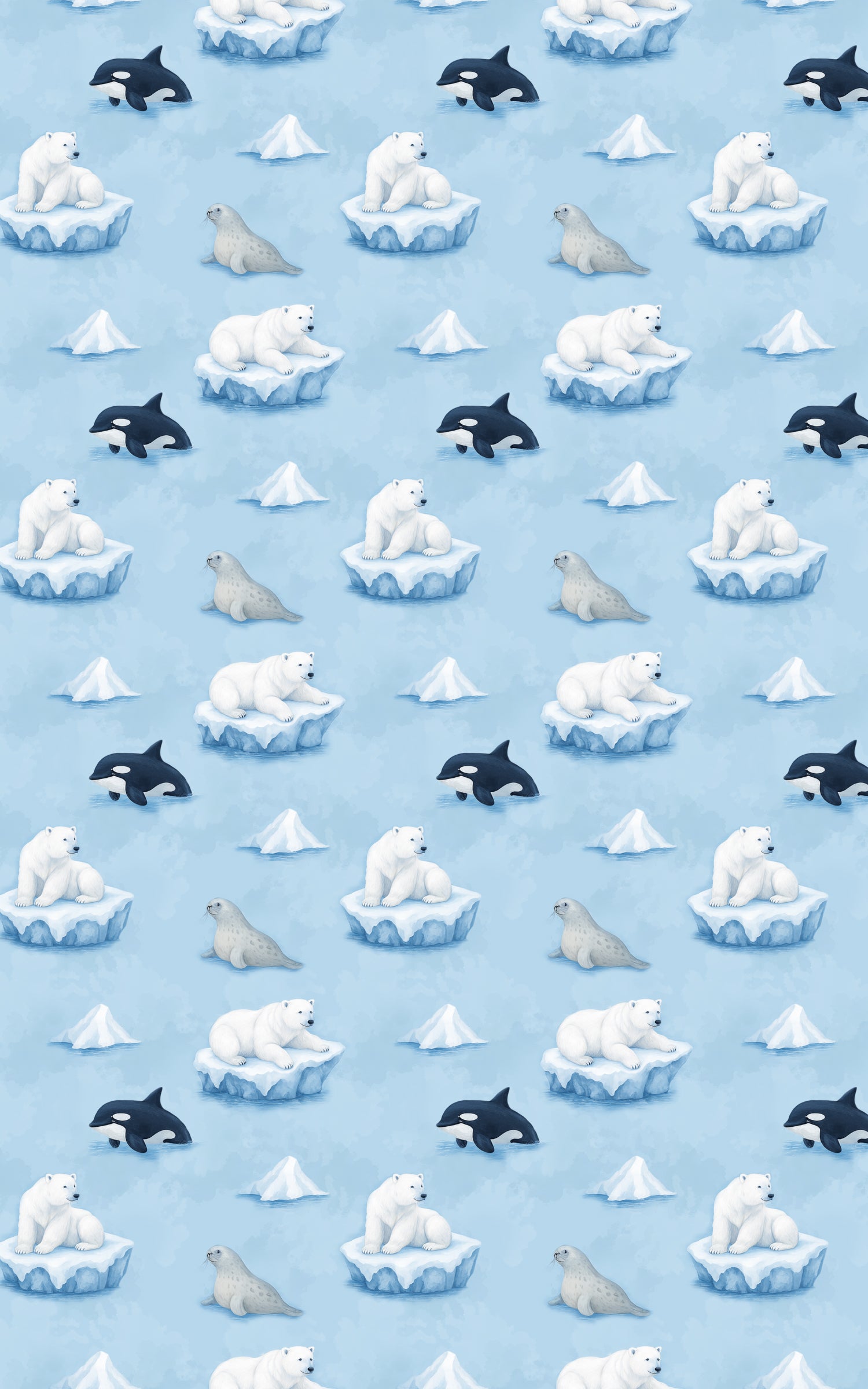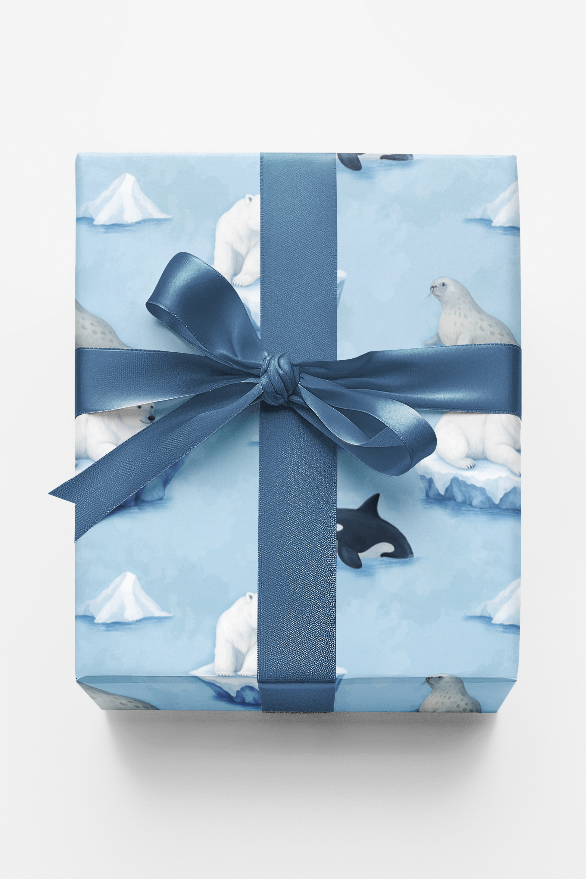 Explore the quiet beauty of the frozen north with this charming wrapping paper featuring polar bears, seals, and orcas drifting among icy floes and snow-capped icebergs. Illustrated in soft watercolor shades of icy blue and white, this seamless design feels peaceful, whimsical, and full of wintry wonder. Perfect for holiday gifting, winter birthdays, baby showers, or everyday wrapping, it brings a gentle Arctic adventure to every present.