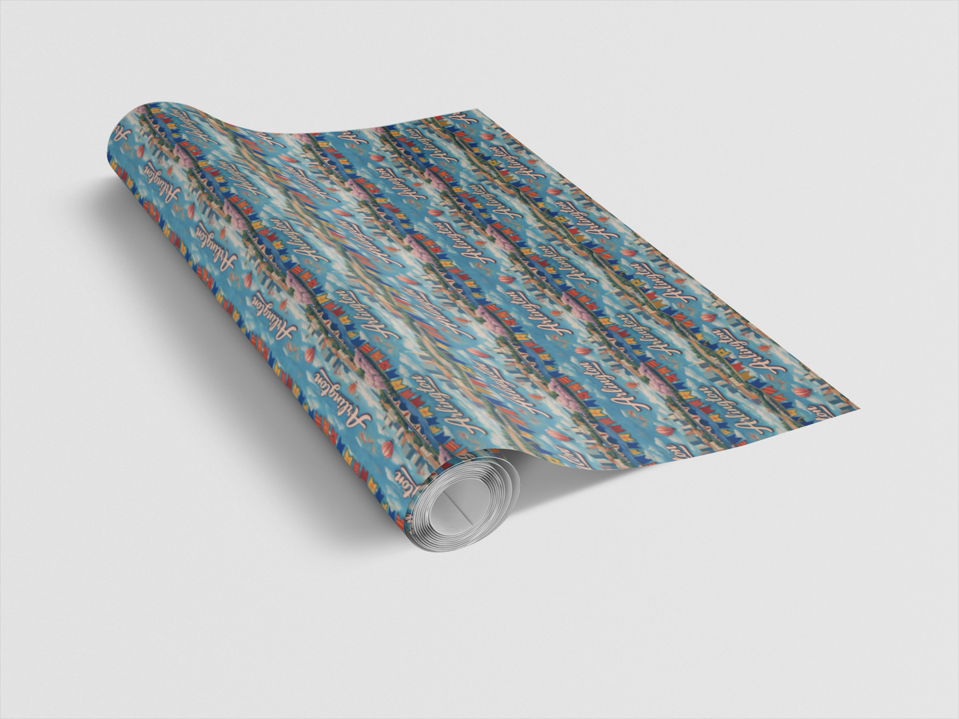 Festive, patriotic, and full of hometown charm, Arlington USA Classic celebrates this vibrant city just across the Potomac. Featuring iconic skyline views, historic architecture, blooming cherry blossoms, colorful pennant banners, and hot air balloons drifting across a bright blue sky, this cheerful repeating pattern captures Arlington’s timeless appeal.