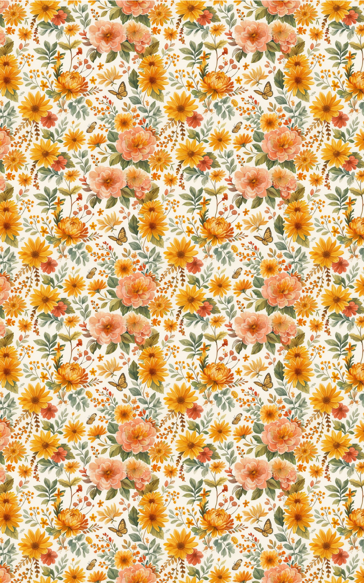 Glowing with the warm embrace of fall’s richest hues, Autumn Chrysanthemum Bloom bursts into life with golden petals, blushing florals, and winding foliage that dance in seasonal harmony. Each blossom feels dipped in sunlight and crisp autumn air, radiating depth, elegance, and nostalgic charm. This design celebrates the beauty of harvest season—where every fold shimmers with cozy warmth, every glance stirs the magic of changing leaves, and every brushstroke captures the glowing spirit of autumn in full, blooming glory.