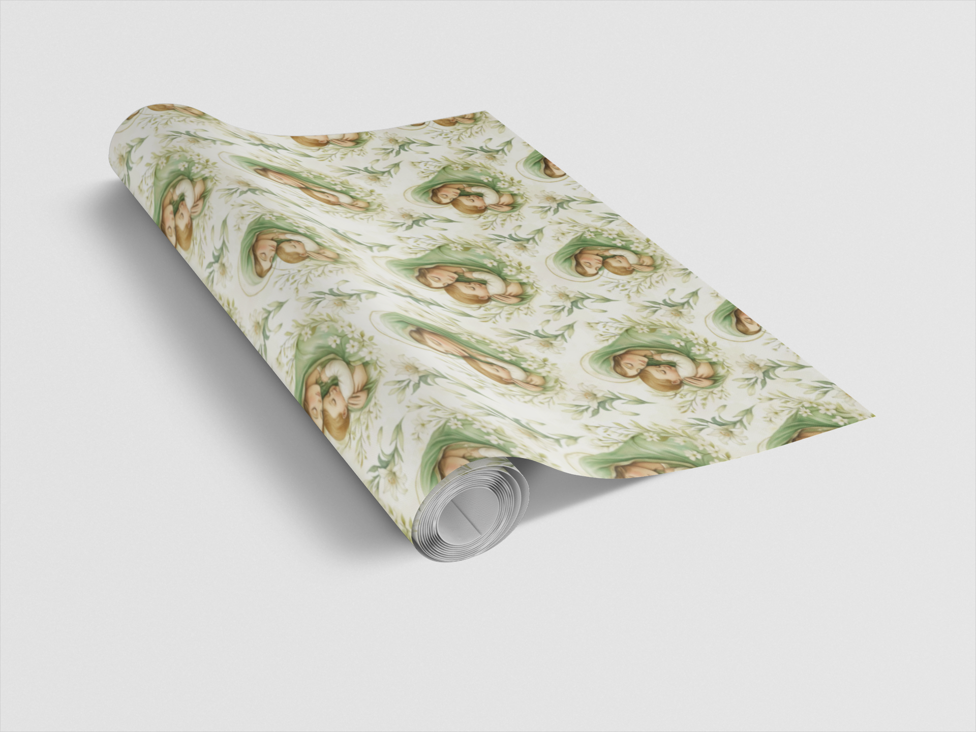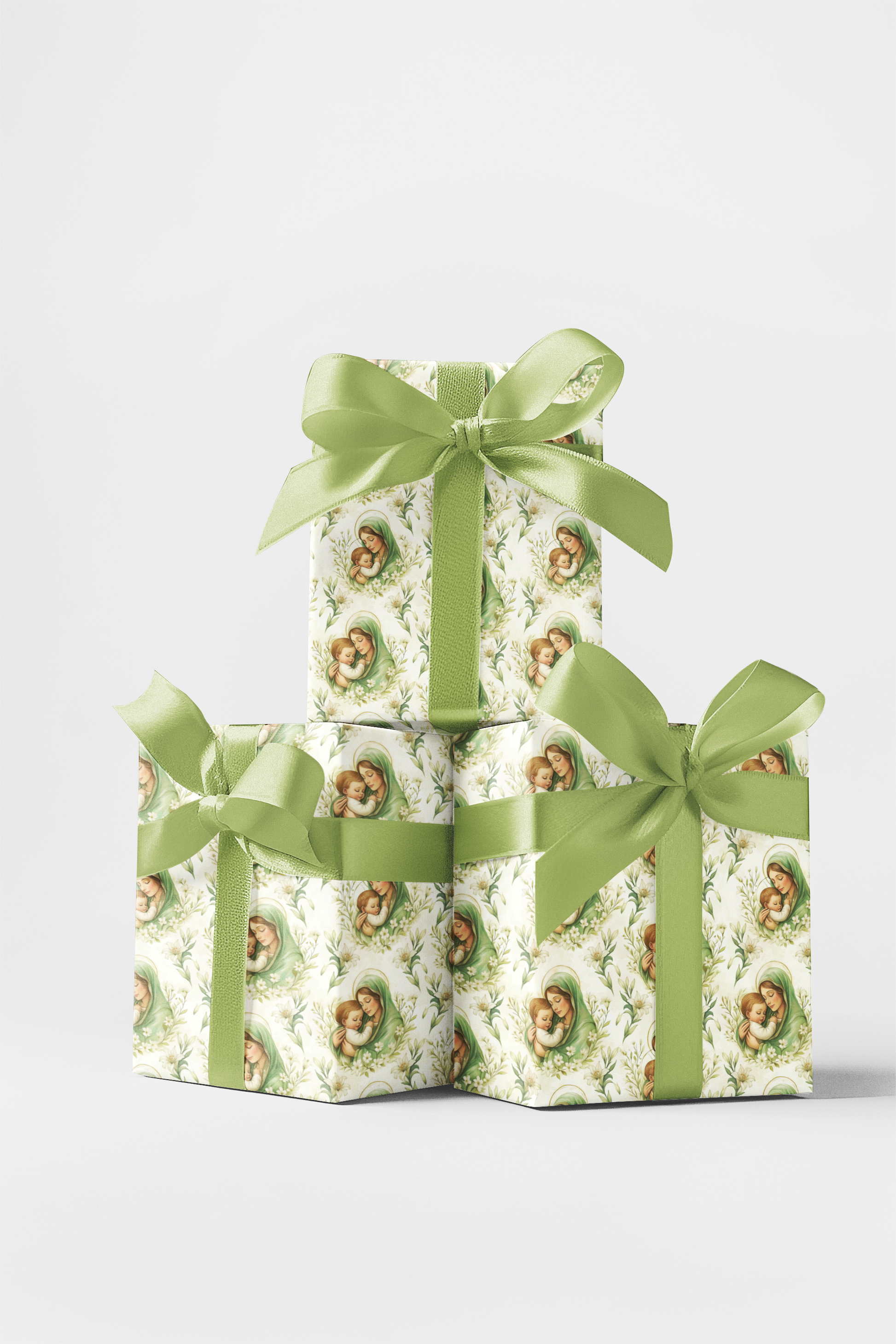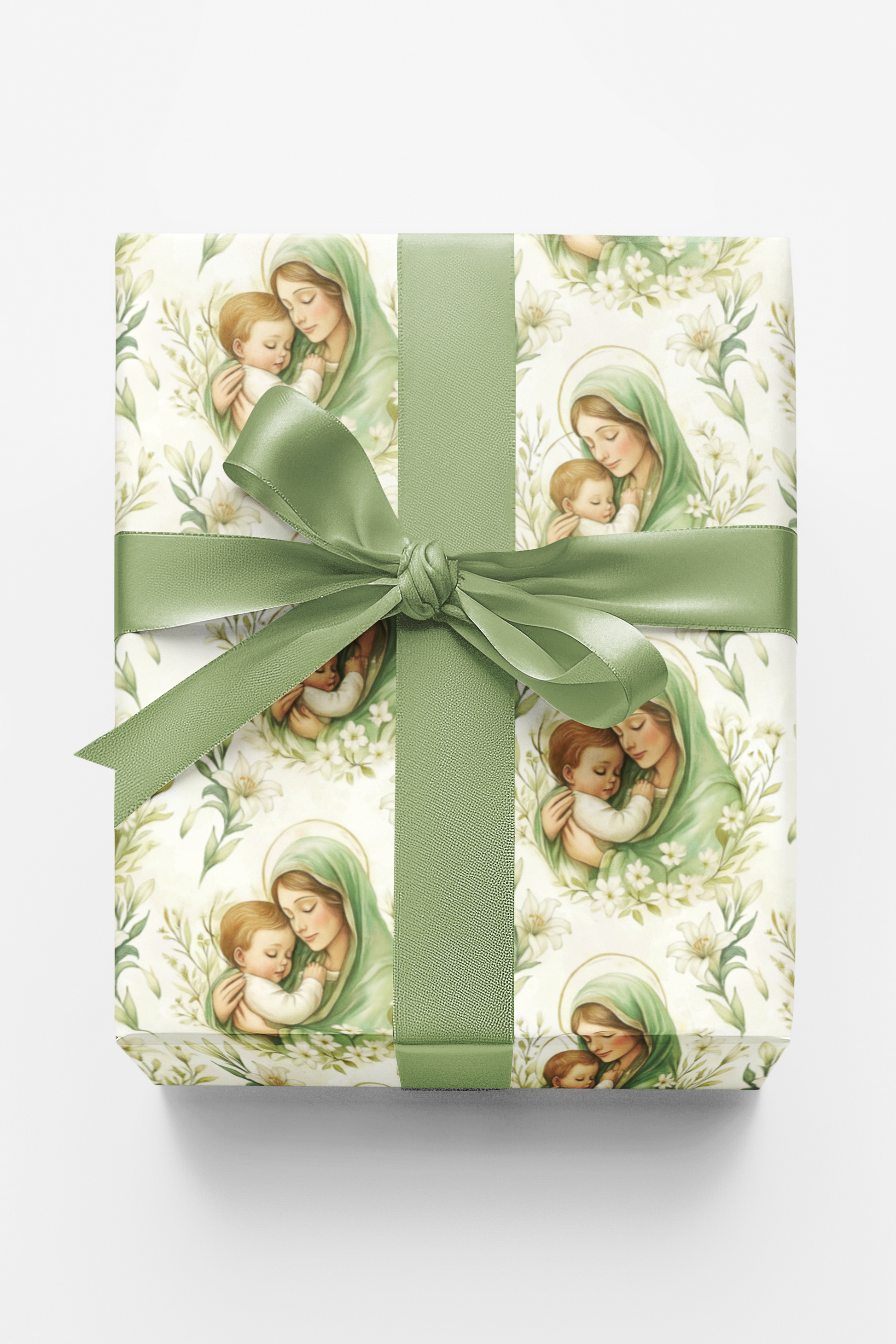 Celebrate grace and devotion with our Ave Maria wrapping paper. This gentle pastel design portrays Mary tenderly holding baby Jesus, surrounded by pure white lilies and delicate gold accents. Elegant and heartfelt, it captures the sacred beauty of the nativity, making it perfect for Christmas, religious celebrations, baptisms, or meaningful holiday gifting. Each sheet radiates peace, love, and timeless reverence.