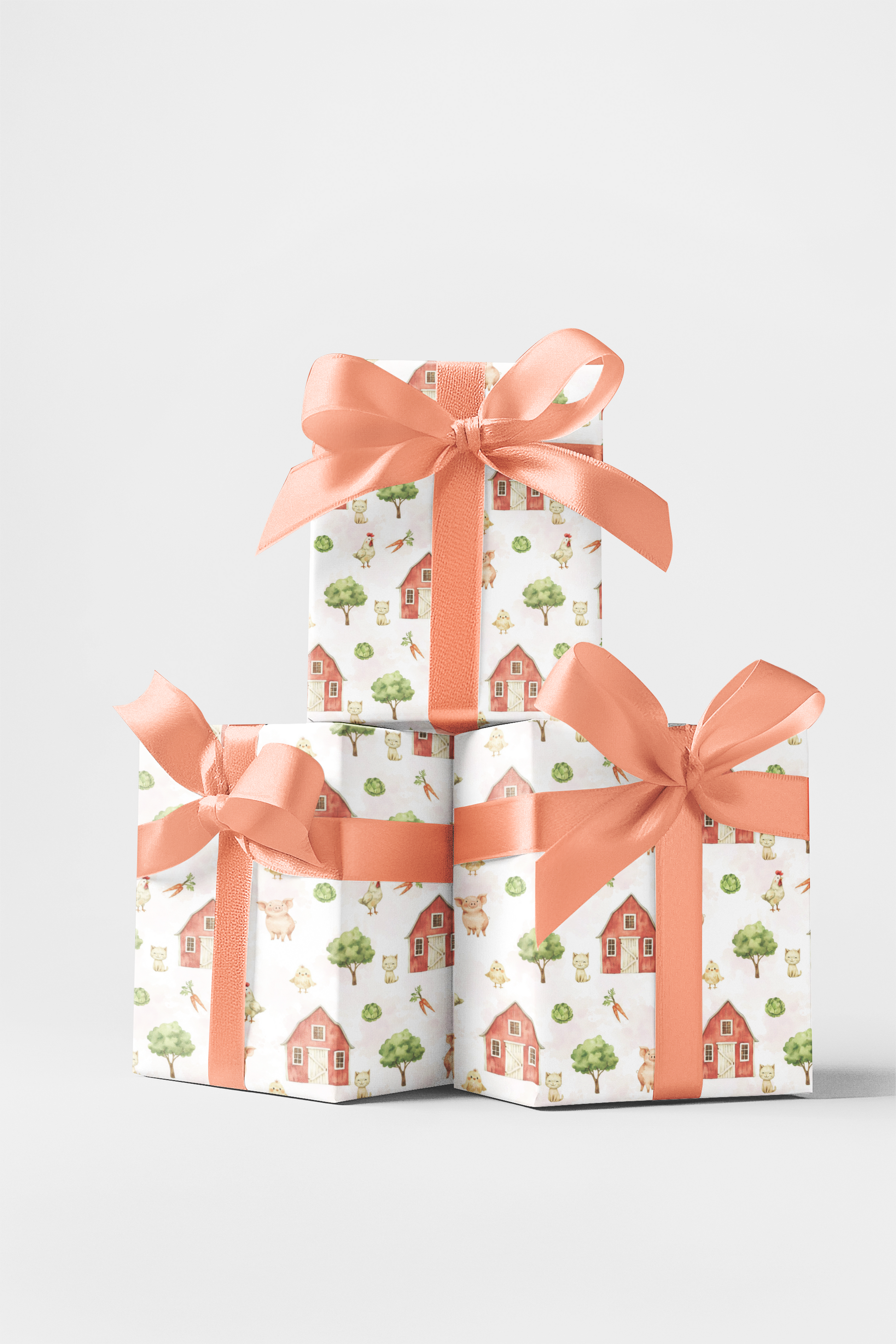 Welcome the charm of country life with this delightful wrapping paper featuring a peaceful farmyard filled with barns, piglets, chickens, chicks, trees, and garden veggies. Illustrated in soft watercolor tones on a light, airy background, this seamless design feels gentle, wholesome, and full of storybook warmth. Perfect for birthdays, baby showers, kids’ gifts, or everyday wrapping, it brings a sweet farmhouse touch to every present.
