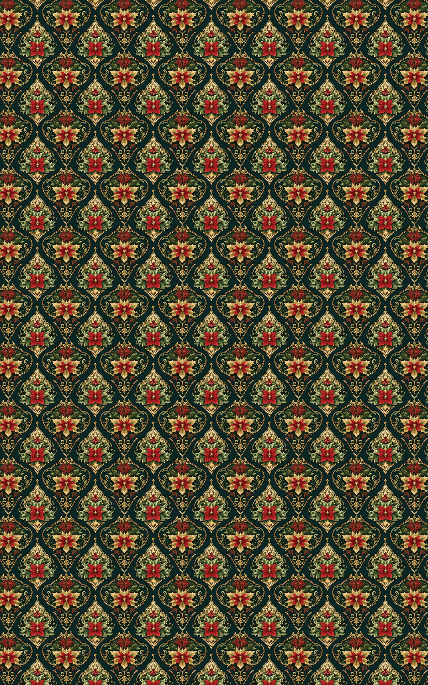 Add a touch of holiday luxury with our Baroque Holiday Medallions wrapping paper. This elegant design showcases rich crimson poinsettias and golden accents woven into ornate damask patterns, set against a deep emerald background. Inspired by classic holiday textiles, it brings warmth, richness, and timeless elegance to your Christmas gifts and festive celebrations.