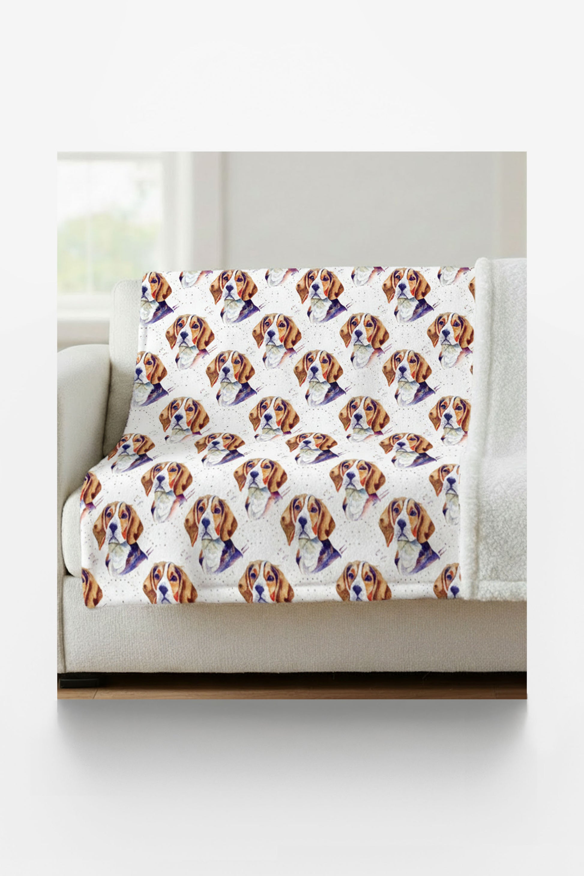 Celebrate the soulful eyes and merry personality of your favorite hound with our Beagle Bounce Sherpa blanket. This artistic design features a stunning gallery of Beagle portraits, rendered in a sophisticated watercolor style with vibrant splashes of indigo, amber, and soft violet. It’s a modern, boutique-level tribute to the breed's adventurous spirit and classic "hound dog" charm. Whether you’re a dedicated Beagle parent or looking for a high-end gift for a dog lover, the "Beagle Bounce" blanket adds a touch of artistic elegance and cozy comfort to any home.