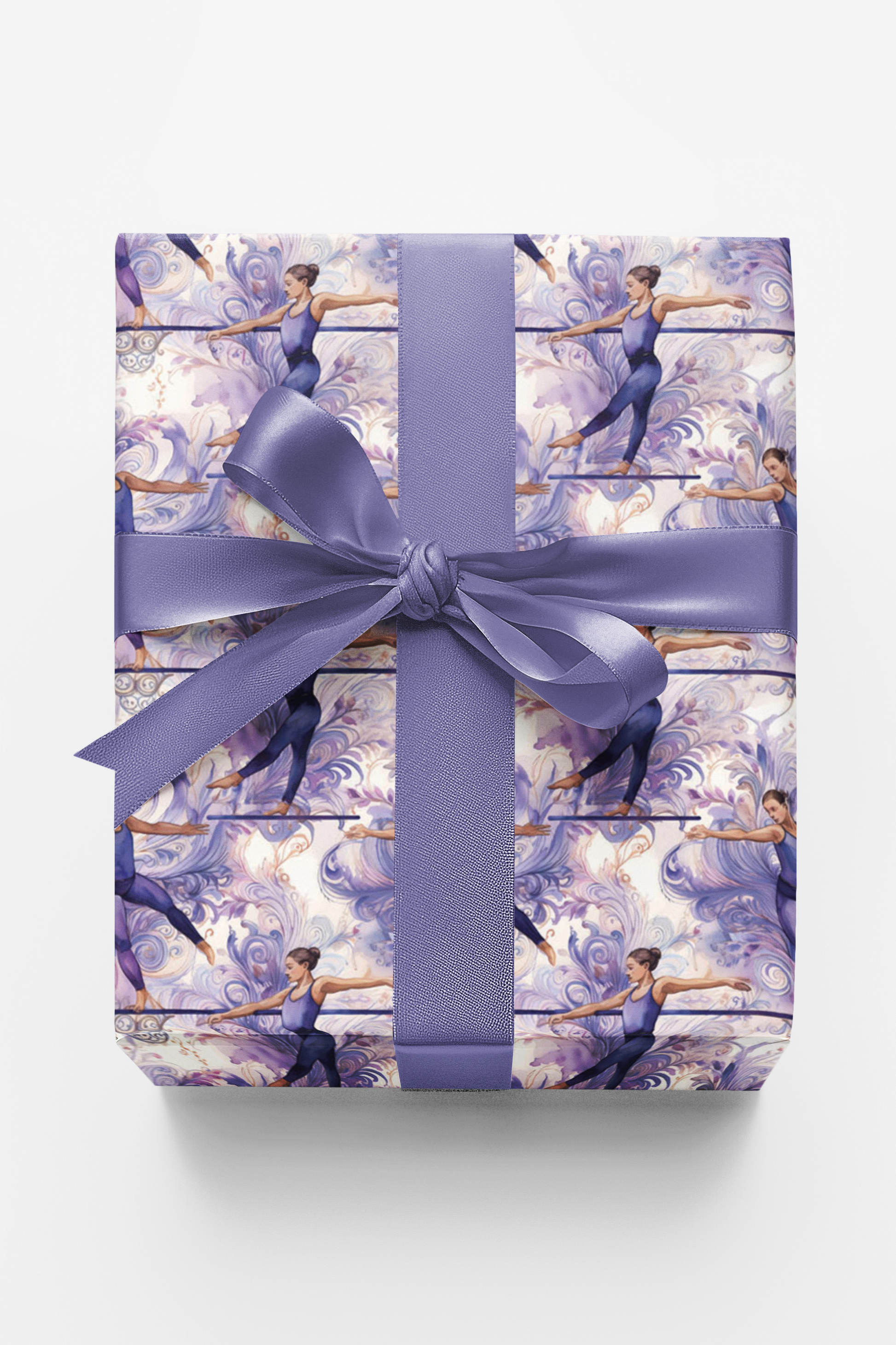 Elevate your gifting with our Beam Dreams Wrapping Paper. Featuring elegant gymnasts performing on balance beams framed by intricate scrollwork, this design blends artistry and athletic grace. Rendered in soft lilac and champagne tones, it evokes sophistication and poise—perfect for those who appreciate beauty, strength, and refined detail. Ideal for birthdays, recitals, or special celebrations, this wrapping paper turns every gift into a work of art.
