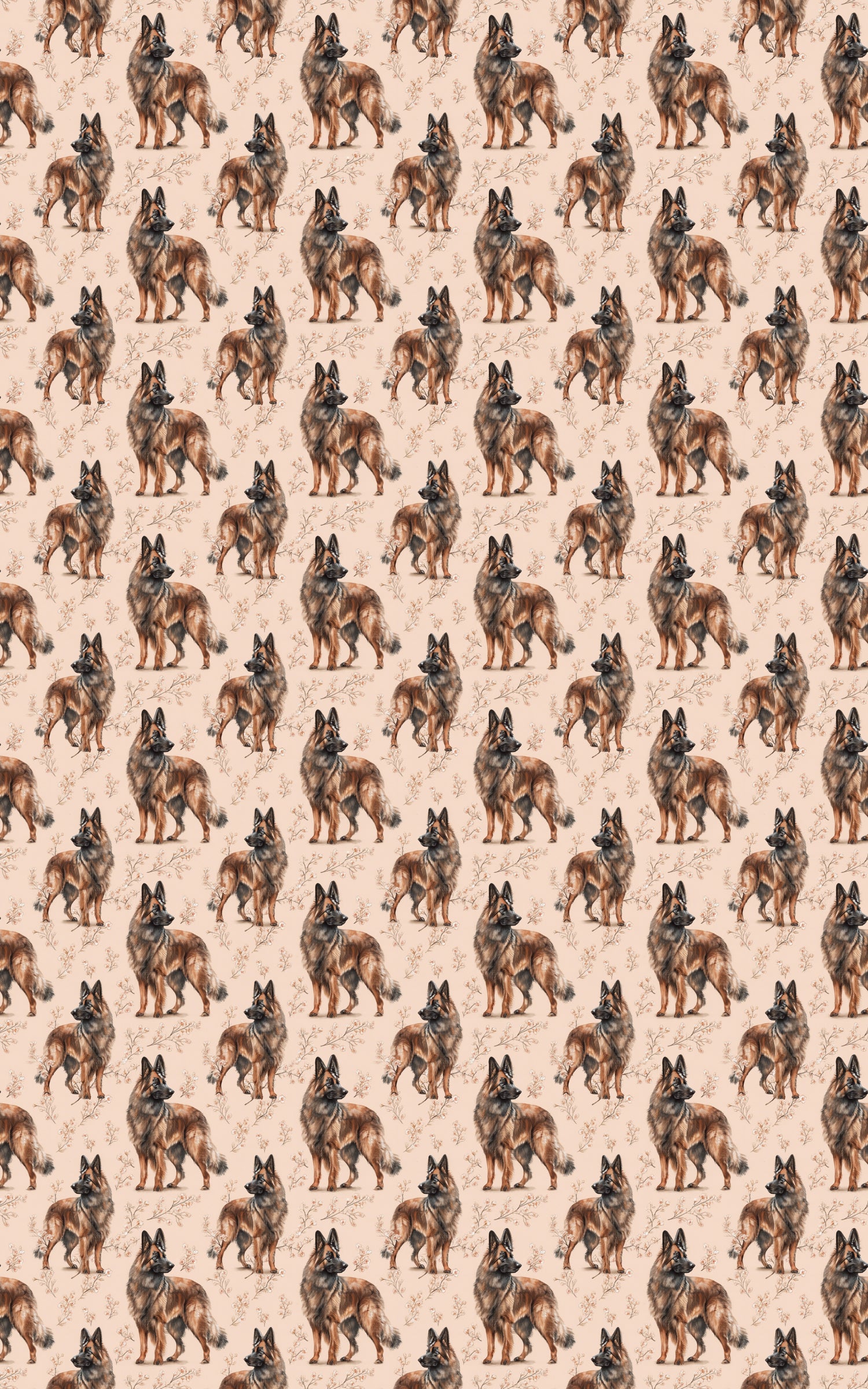 Celebrate elegance in bloom with our Belgian Shepherd Blossoms wrapping paper. Delicate tiny blossoms form graceful outlines of Belgian Shepherds against a soft pastel backdrop, blending floral beauty with the poise of this loyal breed. Perfect for dog lovers, spring occasions, and thoughtful gifting, this design adds a refined, artistic charm to every present.