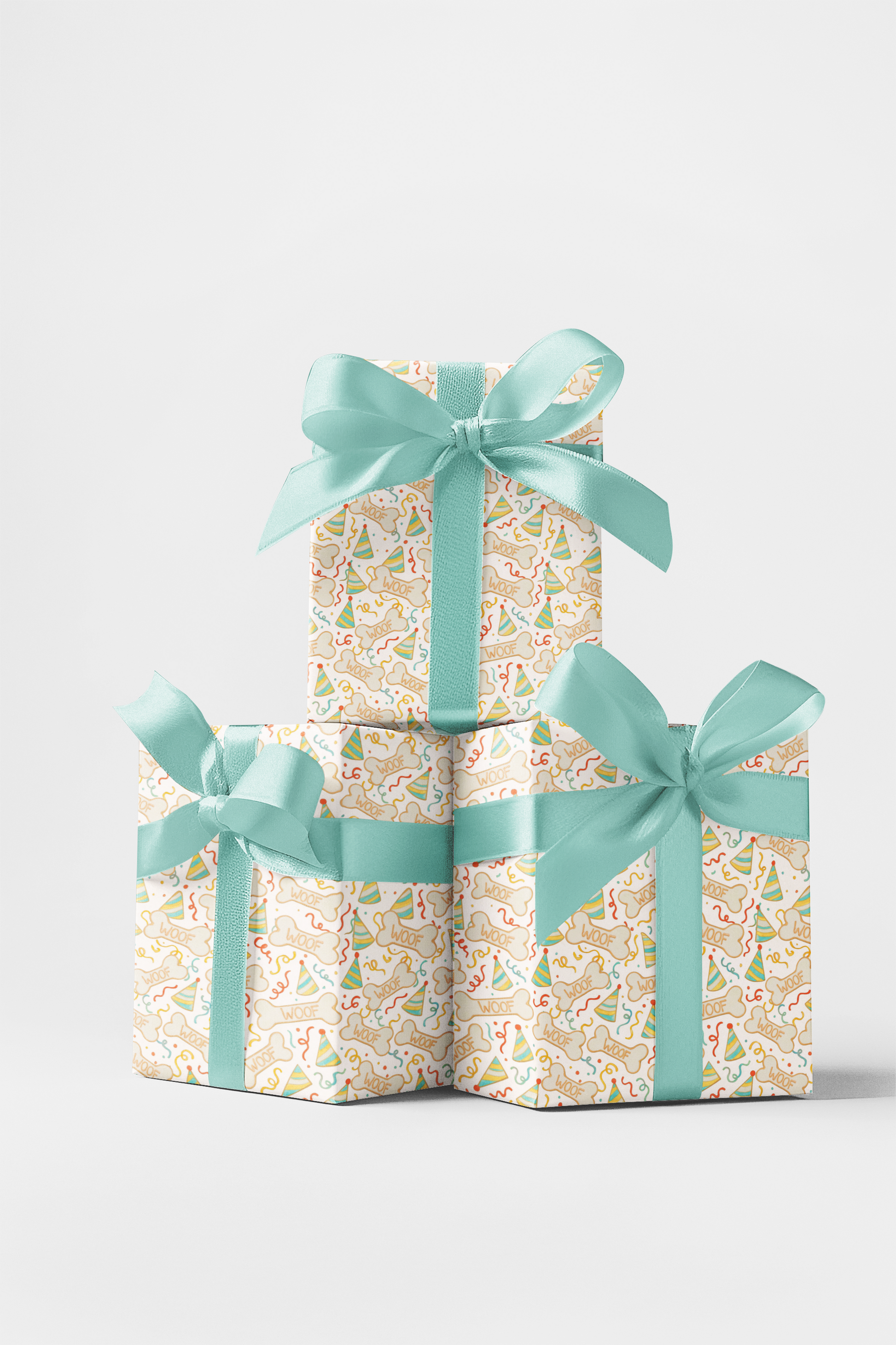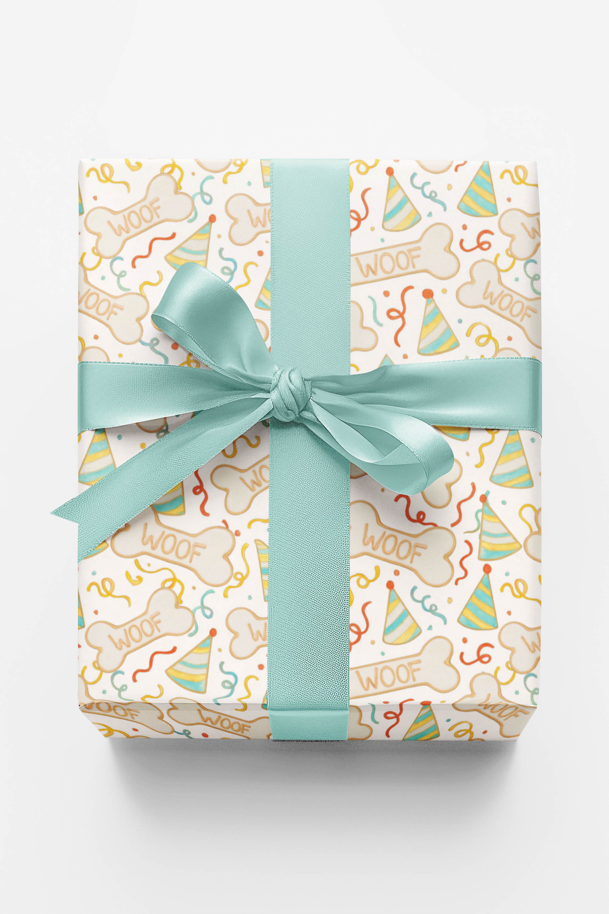 Make every celebration a tail-wagging affair with this playful wrapping paper featuring dog biscuits, party hats, and confetti in soft watercolor hues. Perfect for dog birthdays, adoption anniversaries, or gifts for pet lovers, this cheerful design brings fun and festivity to any occasion. Pairs beautifully with bright ribbons or twine for a joyful, handmade touch.