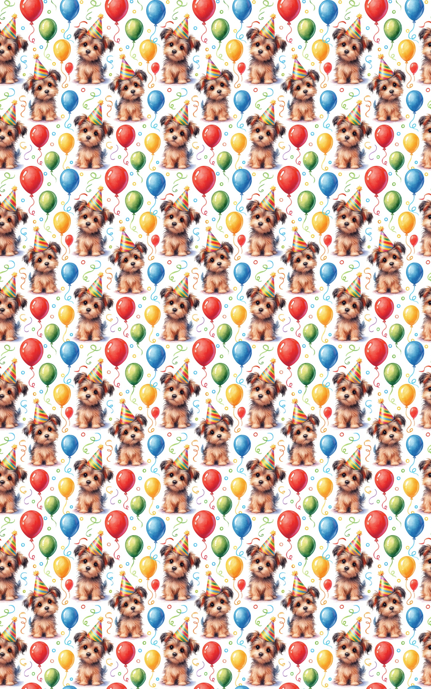 Wrapped in a whirlwind of festivity, this playful pup sits proudly amid a burst of color and cheer. With bright eyes gleaming beneath a party hat, it’s the embodiment of joy and celebration. Surrounded by floating balloons and curling ribbons, each detail bounces with life and laughter. This design captures the pure delight of a birthday moment—warm, whimsical, and brimming with tail-wagging happiness.