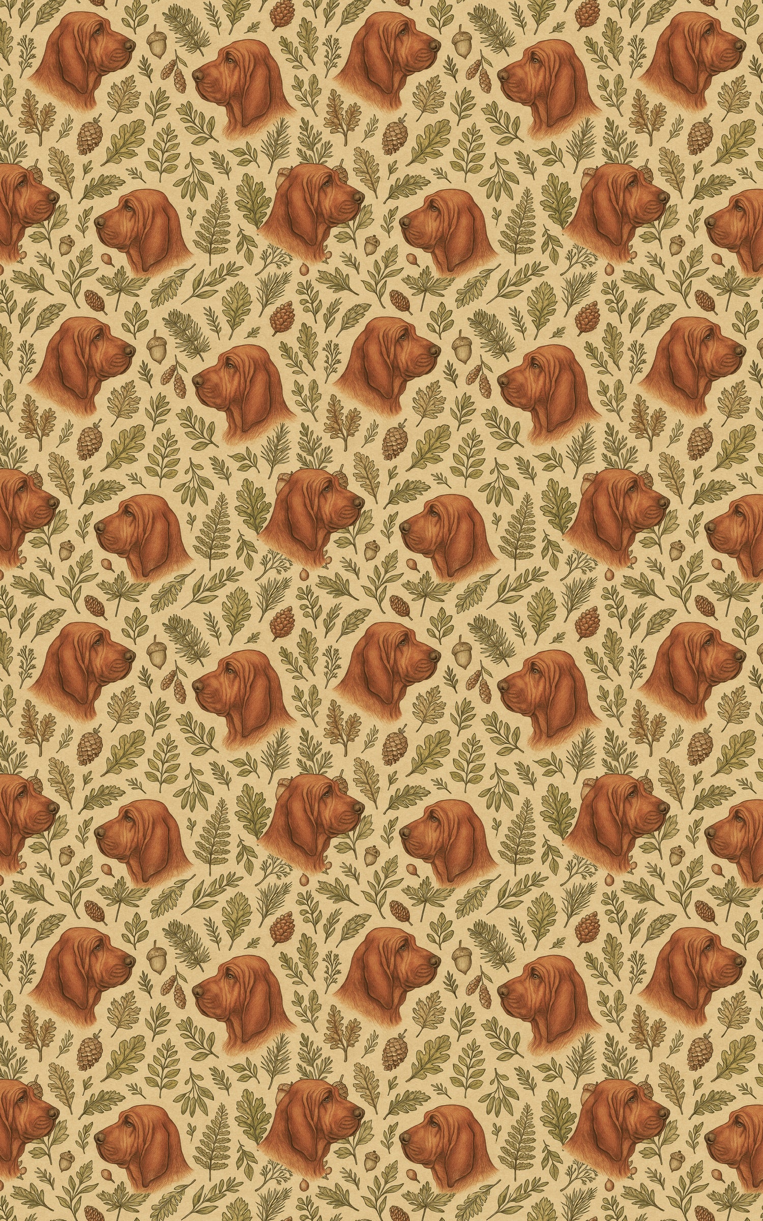 Rooted in timeless grace and rustic charm, Bloodhound Botanica pairs the noble scent hound with a tapestry of oak leaves, pinecones, and acorns. The warm amber tones of the Bloodhound’s coat blend harmoniously with nature’s earthy palette, evoking autumn walks through whispering woods. Each fold tells a story of loyalty and discovery, of strength wrapped in gentleness. This design celebrates natural elegance and quiet devotion—where heritage meets the beauty of the wild, and every glance carries the soul of the forest.