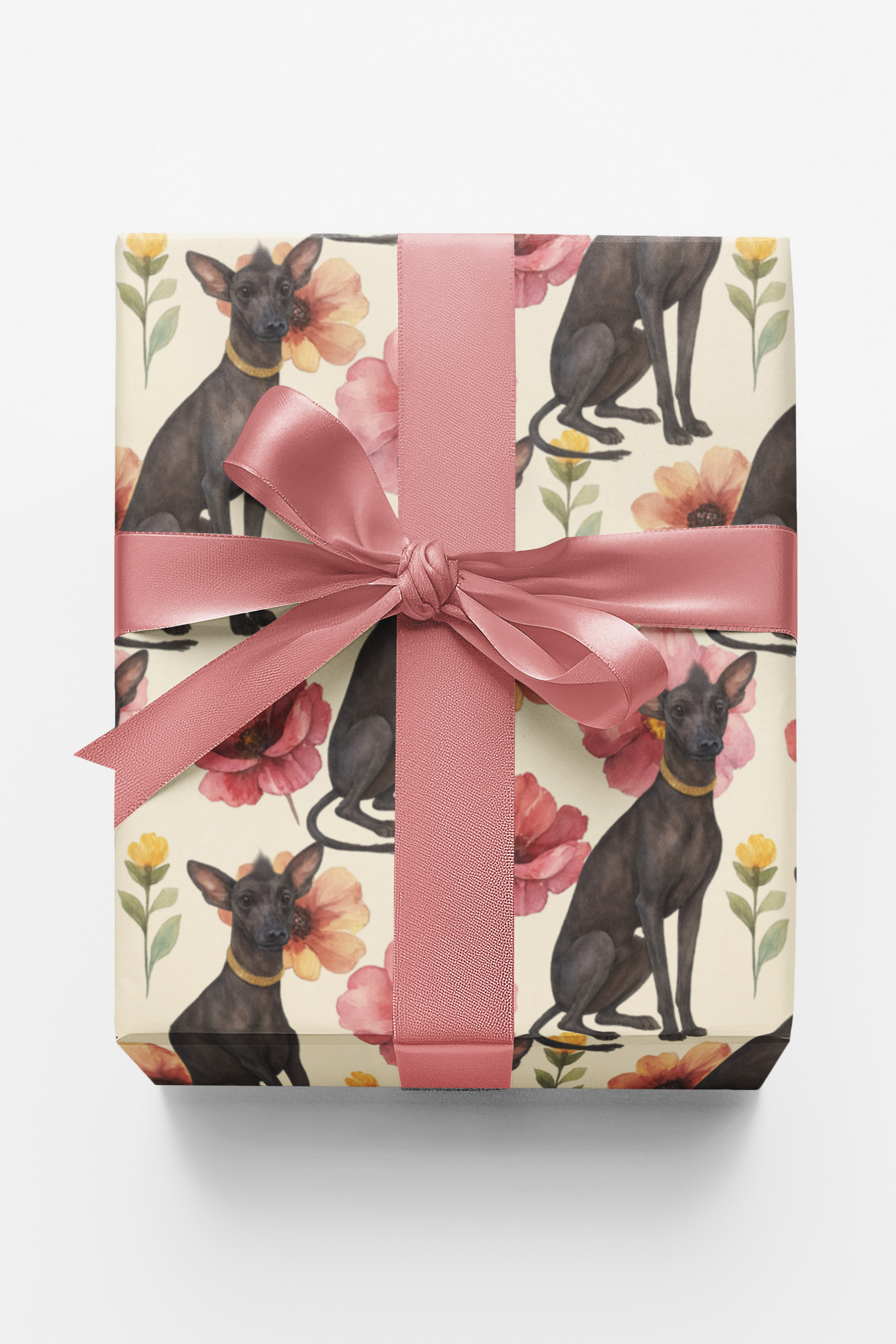 Elegant and graceful, the Peruvian Inca Orchid brings refined beauty to this enchanting wrapping paper design. Surrounded by delicate flowers, their gentle nature and unique charm shine through, adding both warmth and sophistication to every gift. Perfect for dog lovers and any occasion, this design celebrates the rarity and individuality of this remarkable breed.