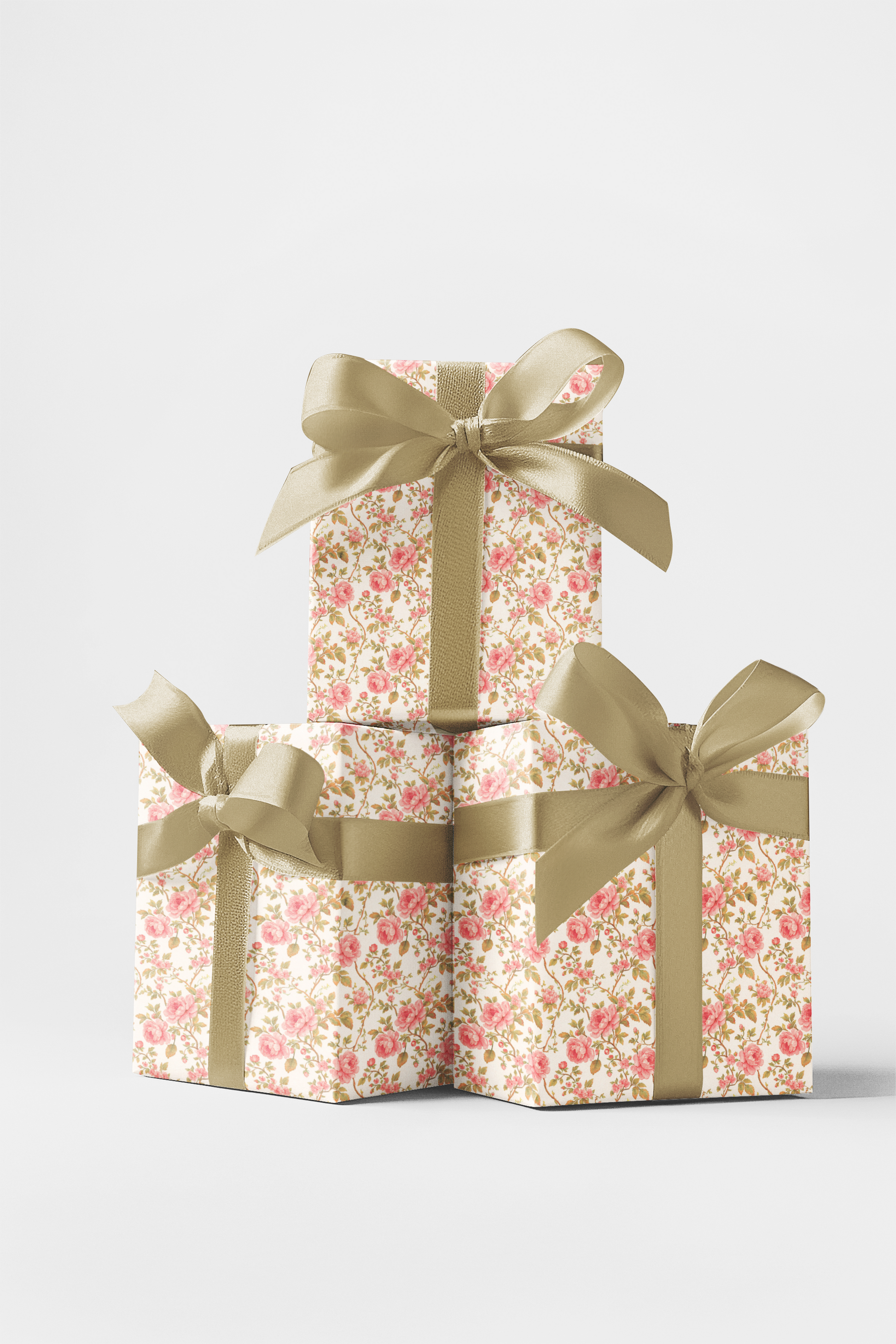Draped in soft blush and antique gold, Rose Reverie whispers tales of timeless romance and afternoon tea in sunlit gardens. Each rose unfurls like a memory—gentle, fragrant, and endlessly graceful—while delicate vines weave through the design with quiet elegance. This wrapping paper captures the poetry of nostalgia and the warmth of vintage beauty, where every fold feels like the turning of a cherished love letter sealed with floral dreams.