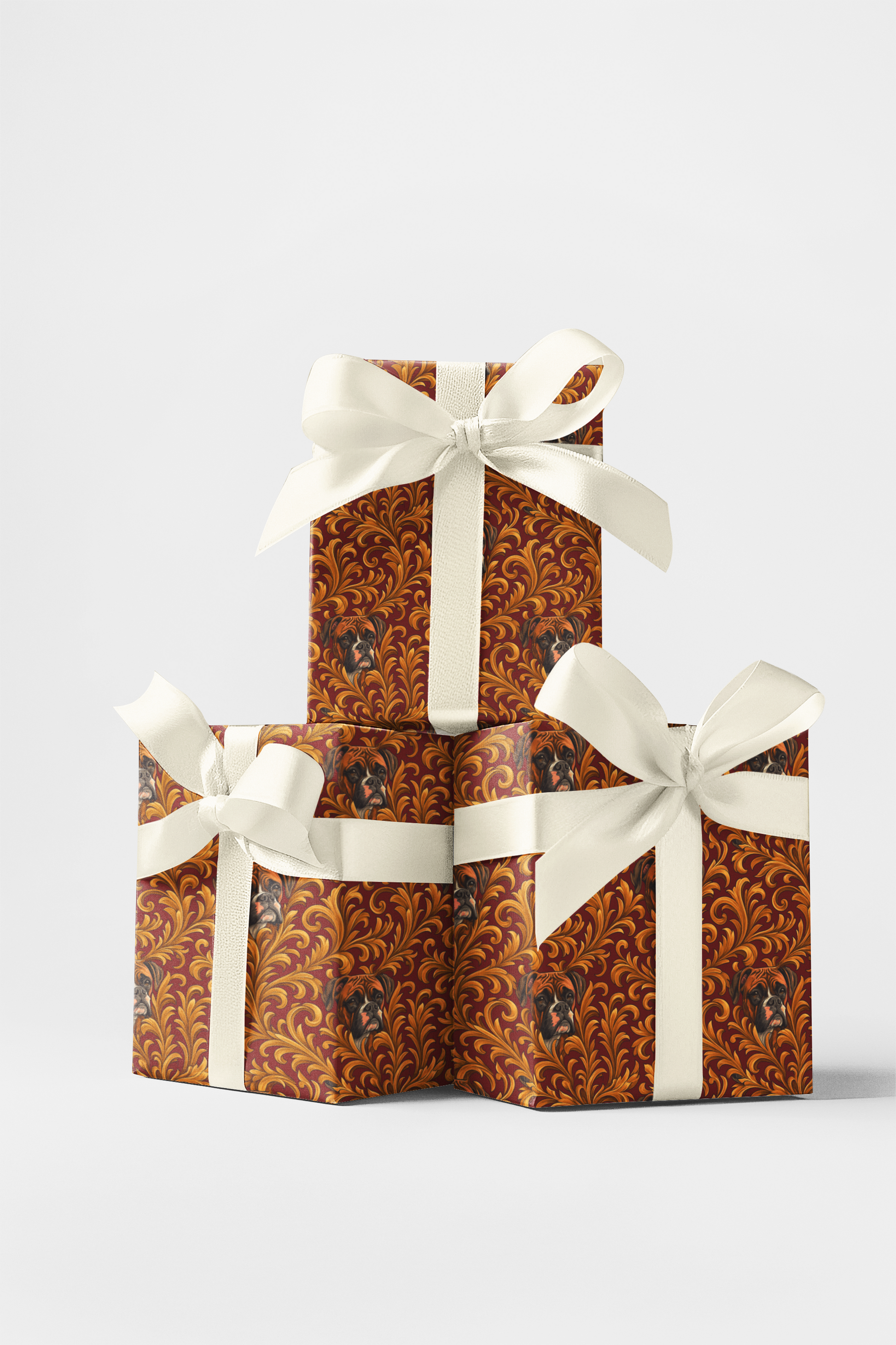 Add a touch of timeless elegance with our Boxer Baroque Burst Wrapping Paper! This sophisticated design intertwines ornate baroque swirl bursts with subtly hidden boxer dog faces, creating a luxurious pattern that balances artistry and charm. Perfect for refined gifting, pet lovers, and anyone who appreciates classic style with a playful twist — this wrap transforms every present into a statement of elegance.