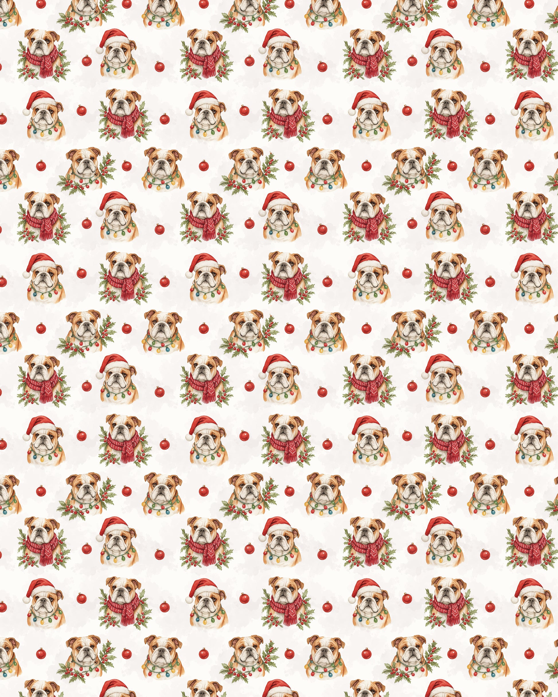 Wrap yourself in seasonal cheer with the Bulldog Christmas Charm Sherpa Blanket, a cozy and whimsical throw designed for bulldog lovers and holiday enthusiasts alike. This luxurious blanket showcases a seamless repeat pattern of adorable bulldog portraits dressed in festive winter accessories—Santa hats, cozy scarves, and colorful Christmas lights—surrounded by classic holiday accents like holly sprigs and red ornaments. Rendered in a soft, hand-painted artistic style, the design brings warmth, personality, and holiday magic to any space.