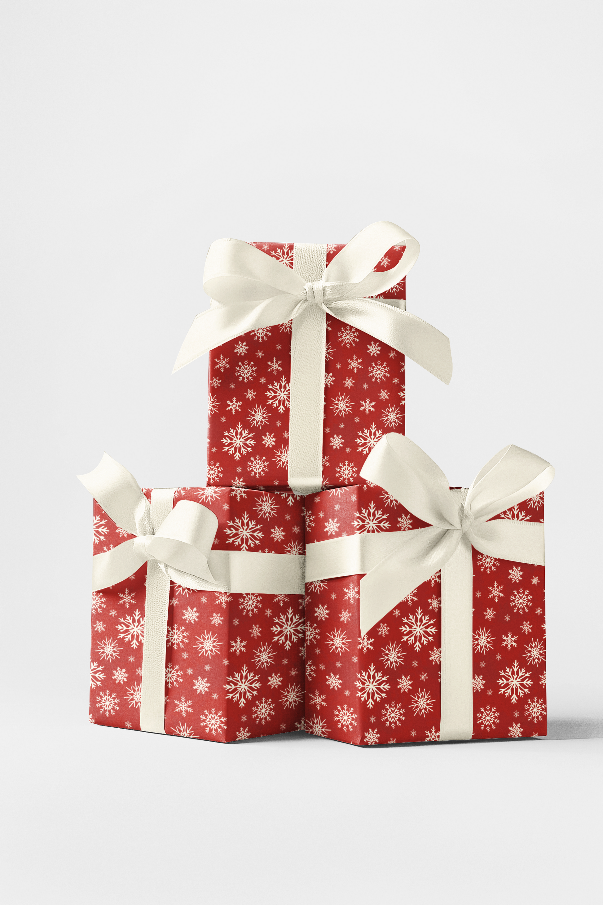 Blanketed in a flurry of delicate snowflakes, Crimson Flurry dances with the spirit of the season. Bold red meets crisp white in a joyful symphony of contrast—radiant, classic, and full of cheer. Each snowflake twirls like a tiny work of art, capturing the magic of winter’s first storm and the warmth of holiday celebration. This design celebrates timeless festivity and vibrant tradition—where every fold sparkles with joy, and every gift feels like a snow-kissed moment wrapped in holiday wonder.