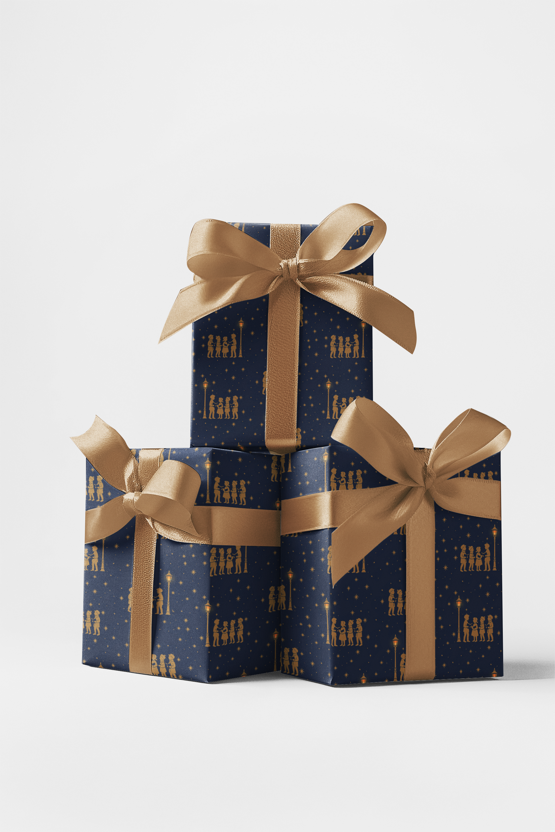 Glowing beneath the gentle shimmer of lamplight, this design captures the heartwarming charm of a winter’s night filled with song. Golden silhouettes of joyful carolers gather against a deep navy sky sprinkled with starlight, each figure alive with the warmth of tradition and togetherness. Caroling Choir celebrates the magic of shared melodies—the way voices rise in harmony, the way music turns cold evenings into moments of pure wonder. Every fold carries the nostalgia of classic holiday cheer and the timeless joy of singing under the stars.
