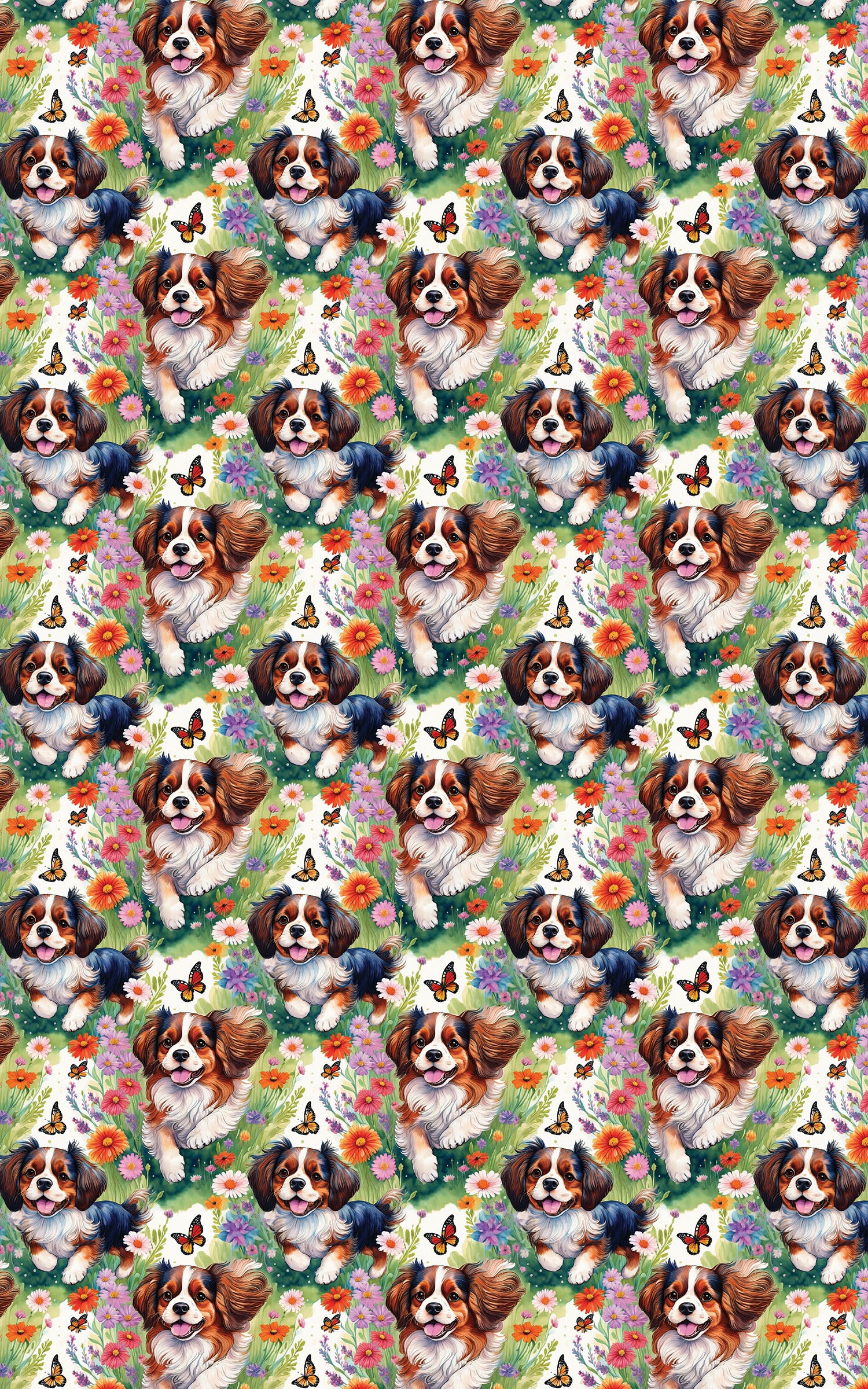 Bring charm and elegance to your gift wrapping with our Garden Party Cavaliers design. Featuring hand-painted watercolor vignettes of Cavalier King Charles Spaniels, softly shaded for depth and warmth, this pattern is balanced with graceful spacing and accented with delicate icons of bones and bows. Perfect for birthdays, celebrations, or simply adding a touch of whimsy, this wrapping paper blends classic sophistication with playful details.