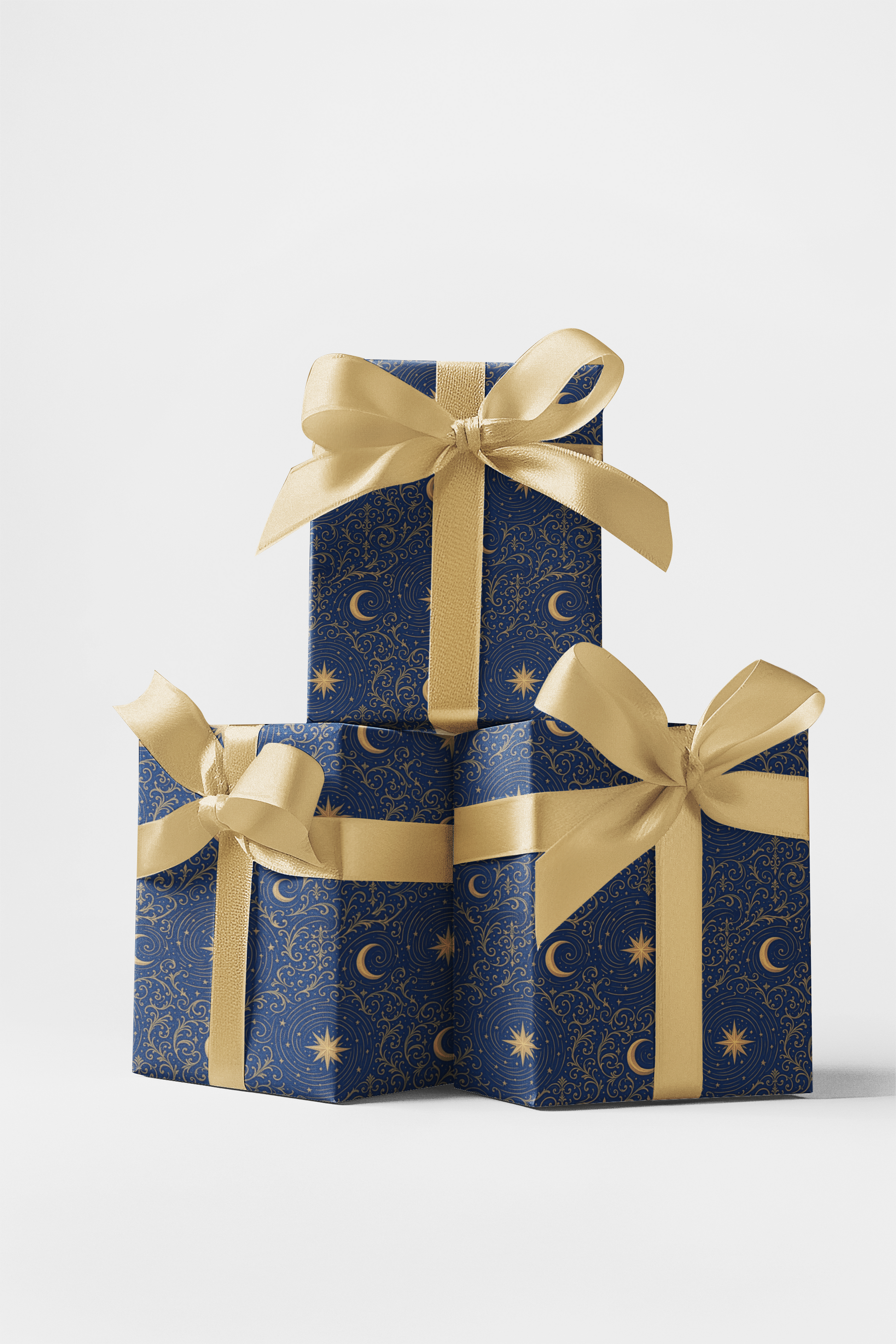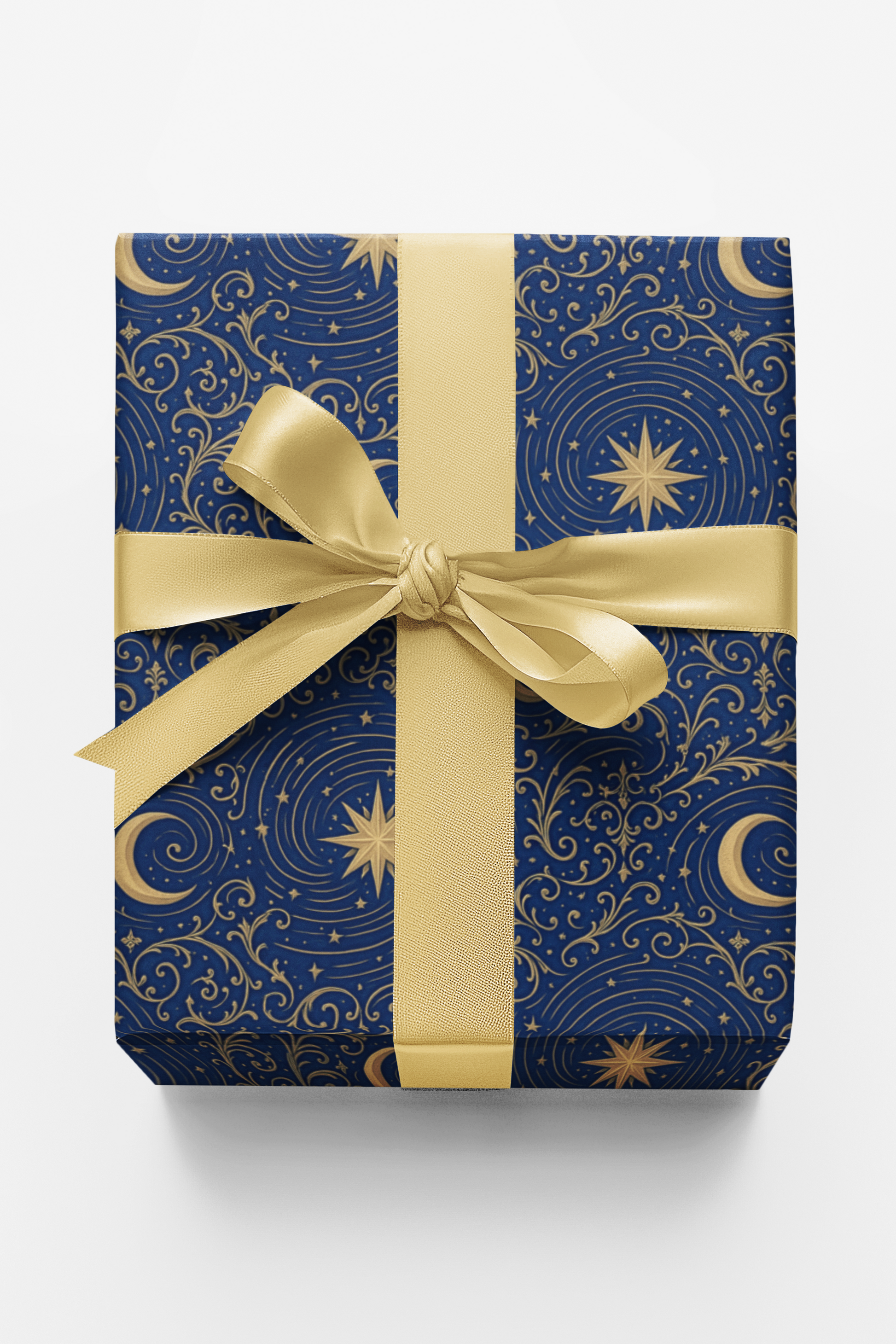 Illuminate your gifts with our Celestial Nouveau Stars wrapping paper. This enchanting design features astral motifs of stars and moons intertwined with winding trails and ornate Art Nouveau–inspired linework. Elegant and mystical, it’s perfect for holiday celebrations, weddings, or any occasion that calls for a touch of celestial charm.