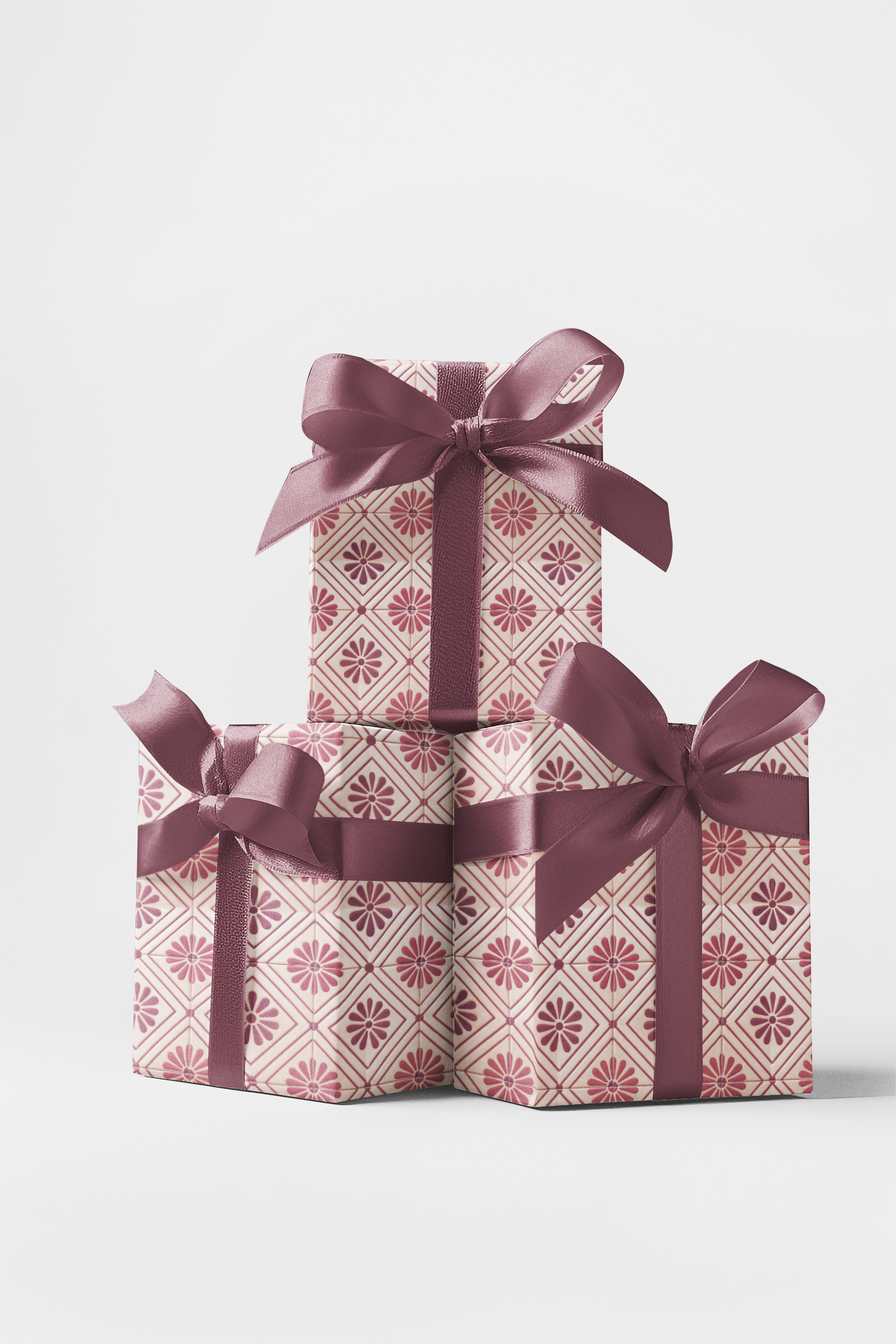Bring a touch of modern charm to your gifts with this beautifully patterned wrapping paper inspired by vintage ceramic tiles. Featuring soft blush pink and mauve tones arranged in a geometric floral motif, this design balances timeless craftsmanship with a fresh, contemporary feel. Its clean lines and subtle color palette make it perfect for birthdays, weddings, Mother’s Day, or everyday gifting. Pair it with cream or rose gold ribbons for an effortlessly elegant finish that feels warm, stylish, and refined.