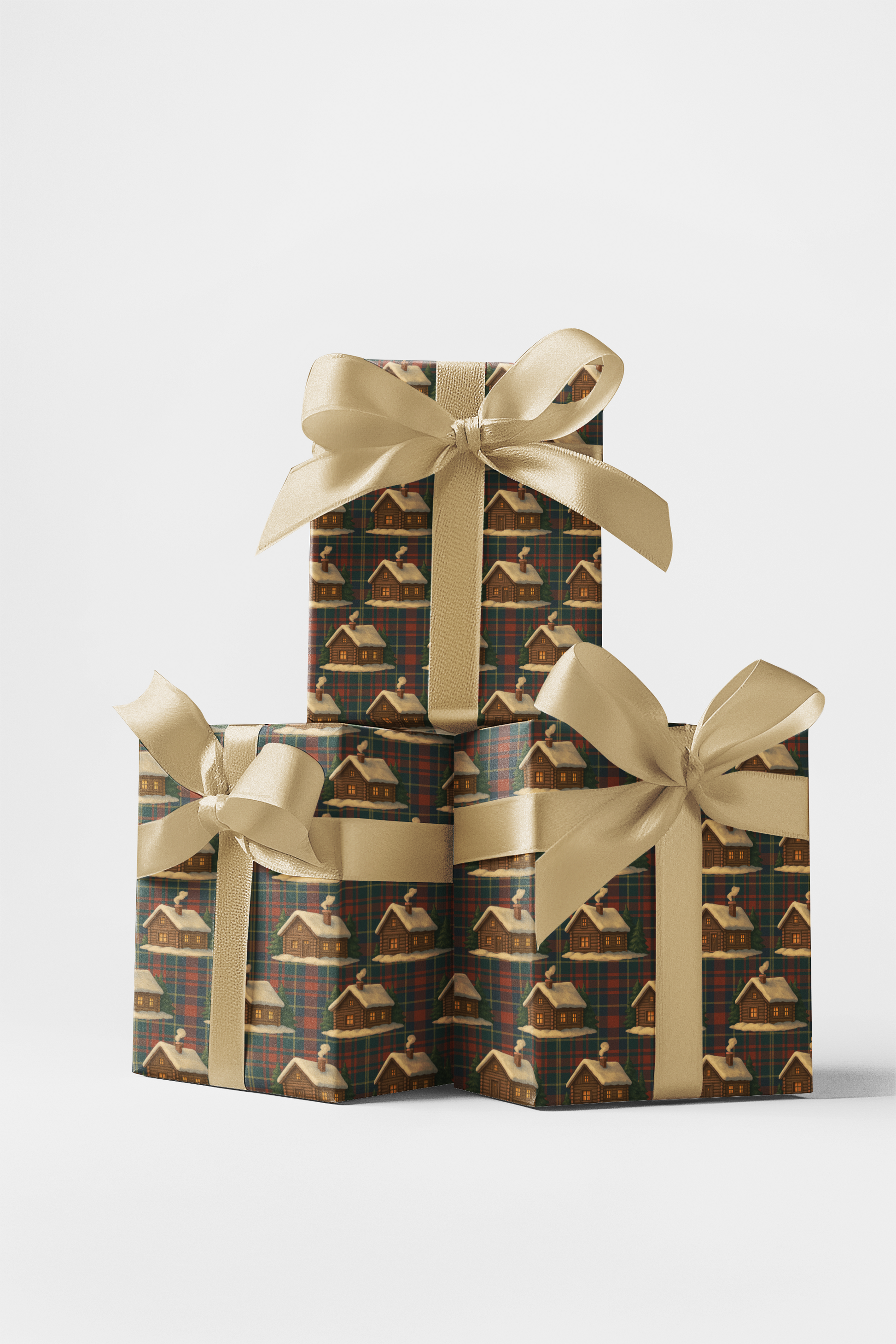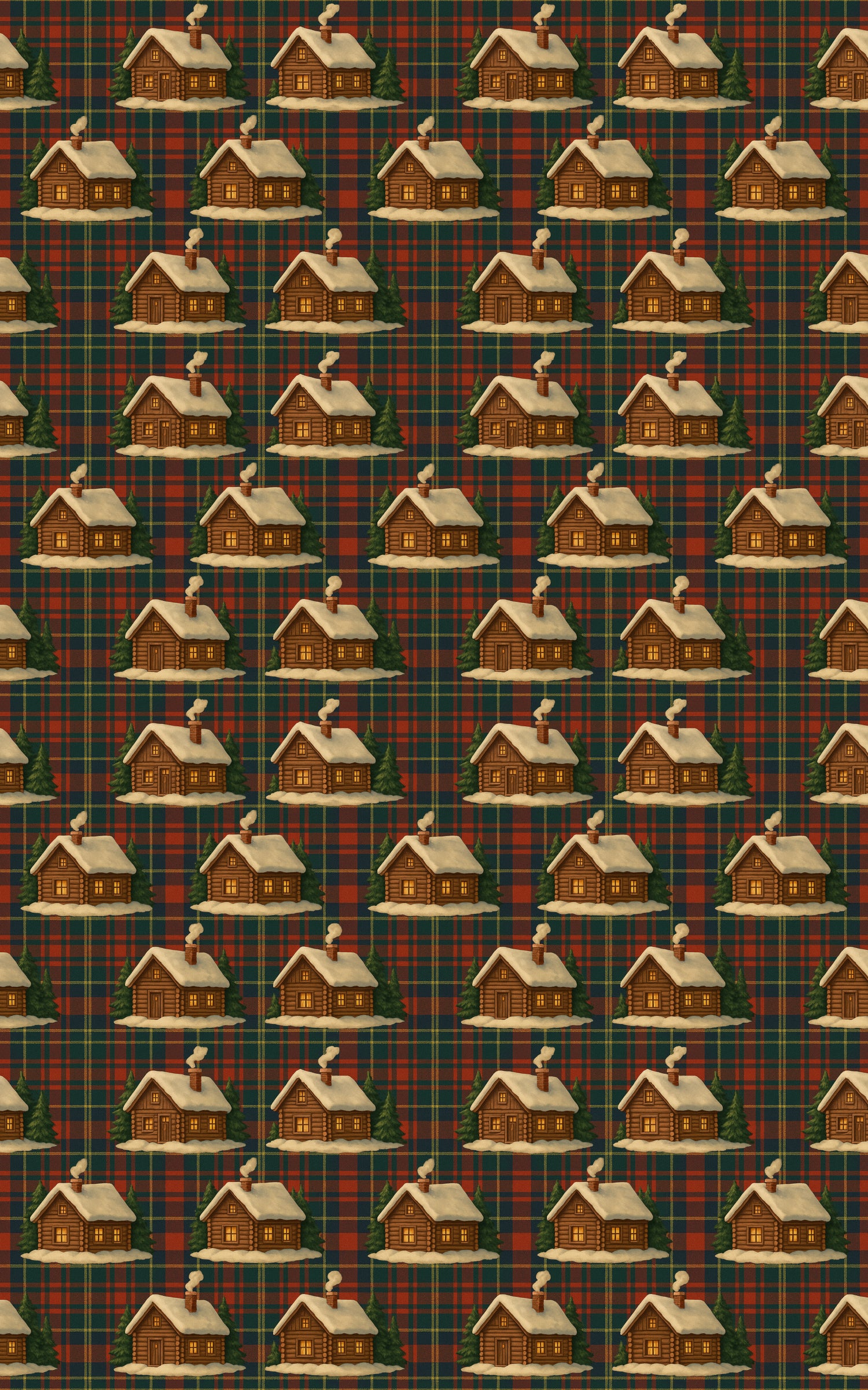 Wrapped in the warmth of winter nostalgia, this pattern blends rustic charm with festive elegance. Cozy log cabins glow against a rich tartan backdrop, their windows lit like tiny beacons of holiday magic. Snow-tipped roofs and evergreen trees whisper stories of quiet nights and crackling fires, while the timeless plaid grounds the scene in classic seasonal comfort. Christmas Cabin Tartan evokes the spirit of a peaceful winter retreat—where every glance feels like stepping into a serene holiday haven wrapped in tradition and wonder.
