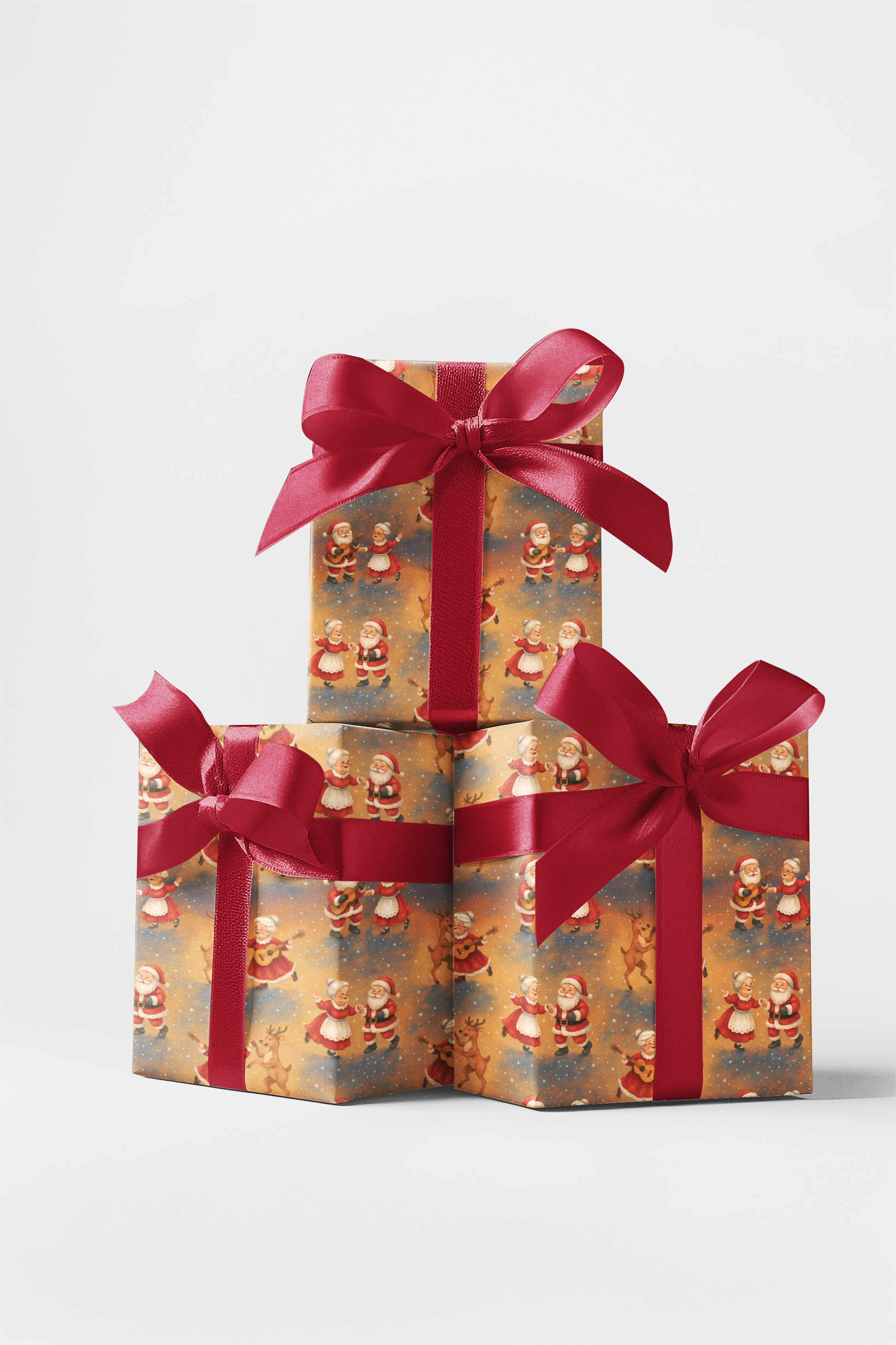 Snowy Serenade Santa and Mrs. Claus have started a full-on holiday jam session! From strumming guitars to twirling with reindeer, this Holiday Hoedown Wrapping Paper is bursting with festive rhythm. Quirky, cheerful, and downright dance-worthy, it’s the perfect wrap for gifts that deserve a standing ovation under the tree.