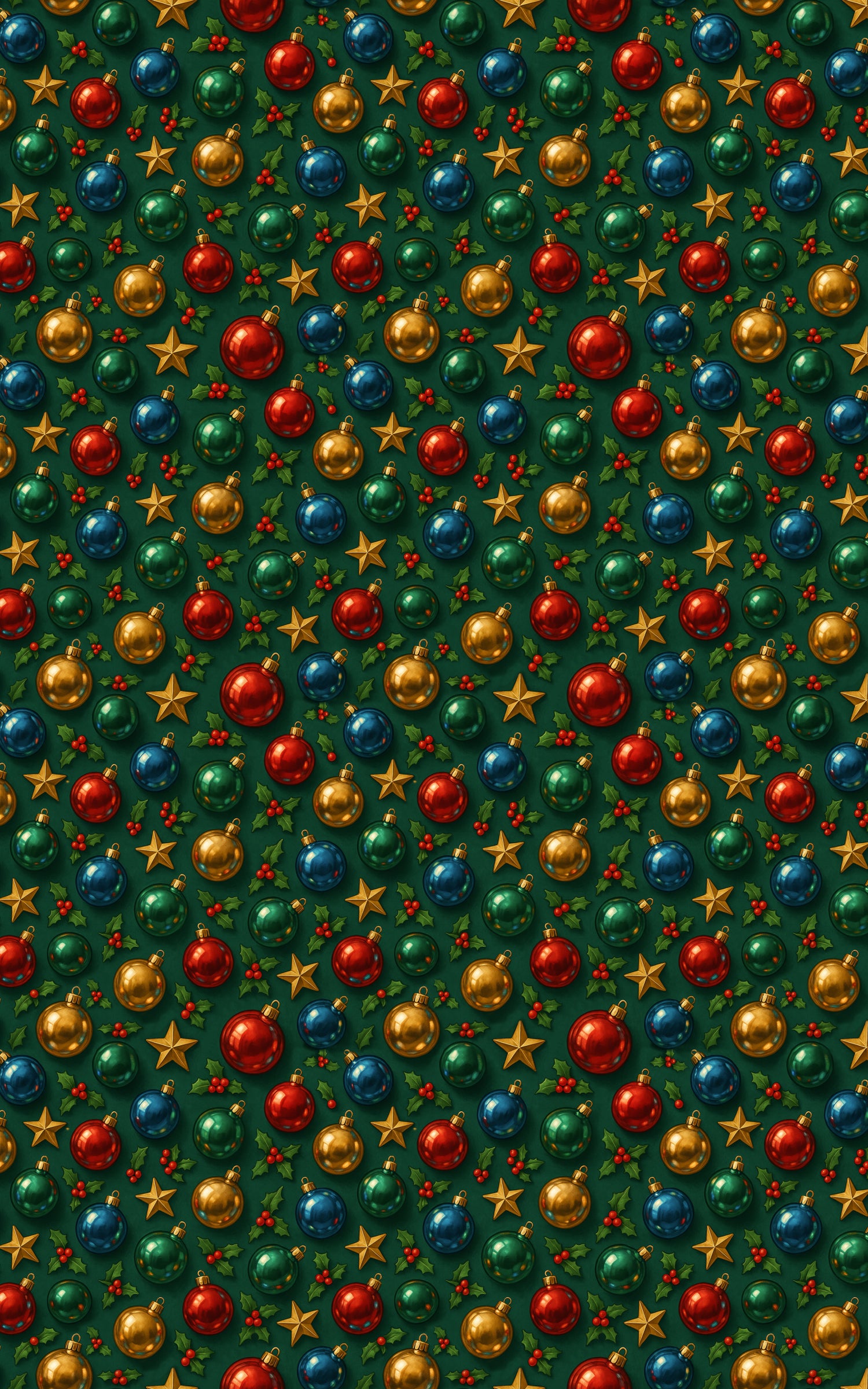Polished to perfection, Chrome Holiday Spheres brings festive luxury to life with a rich symphony of shine and color. Gleaming ornaments in jewel-toned reds, greens, blues, and golds shimmer against a deep evergreen backdrop, reflecting light like treasured keepsakes on a grand holiday tree. Each sphere feels dimensional and indulgent, capturing the warmth, nostalgia, and opulence of the season. This design celebrates classic Christmas glamour—where every surface sparkles, every color feels decadent, and every wrap becomes a statement of timeless holiday magic.