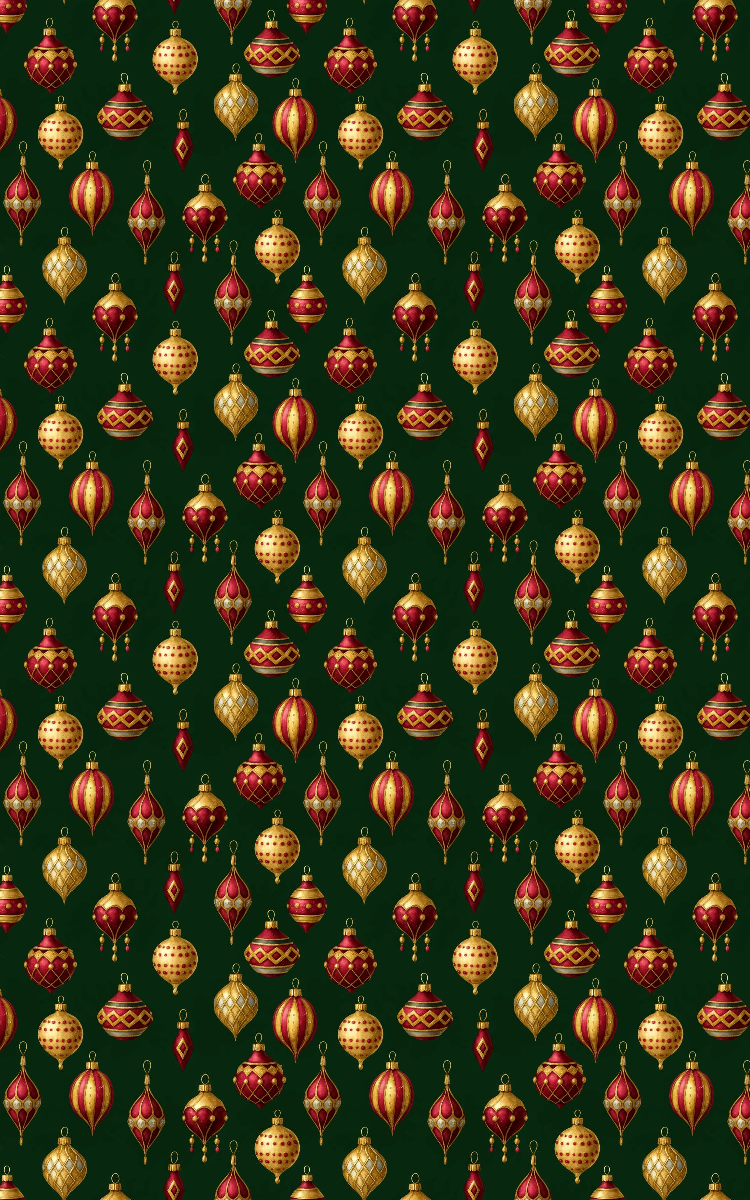Glowing with rich holiday splendor, this design showcases an elegant cascade of red and gold ornaments shimmering against a deep evergreen backdrop. Each bauble—whether faceted, striped, or teardrop-shaped—feels like a tiny treasure, painted with luxe detail and timeless charm. The pattern radiates classic Christmas opulence, capturing the magic of twinkling tree lights and heirloom decorations lovingly unwrapped each year. Every fold of this wrap sparkles with festive nostalgia, where tradition meets golden brilliance in a celebration of holiday beauty.
