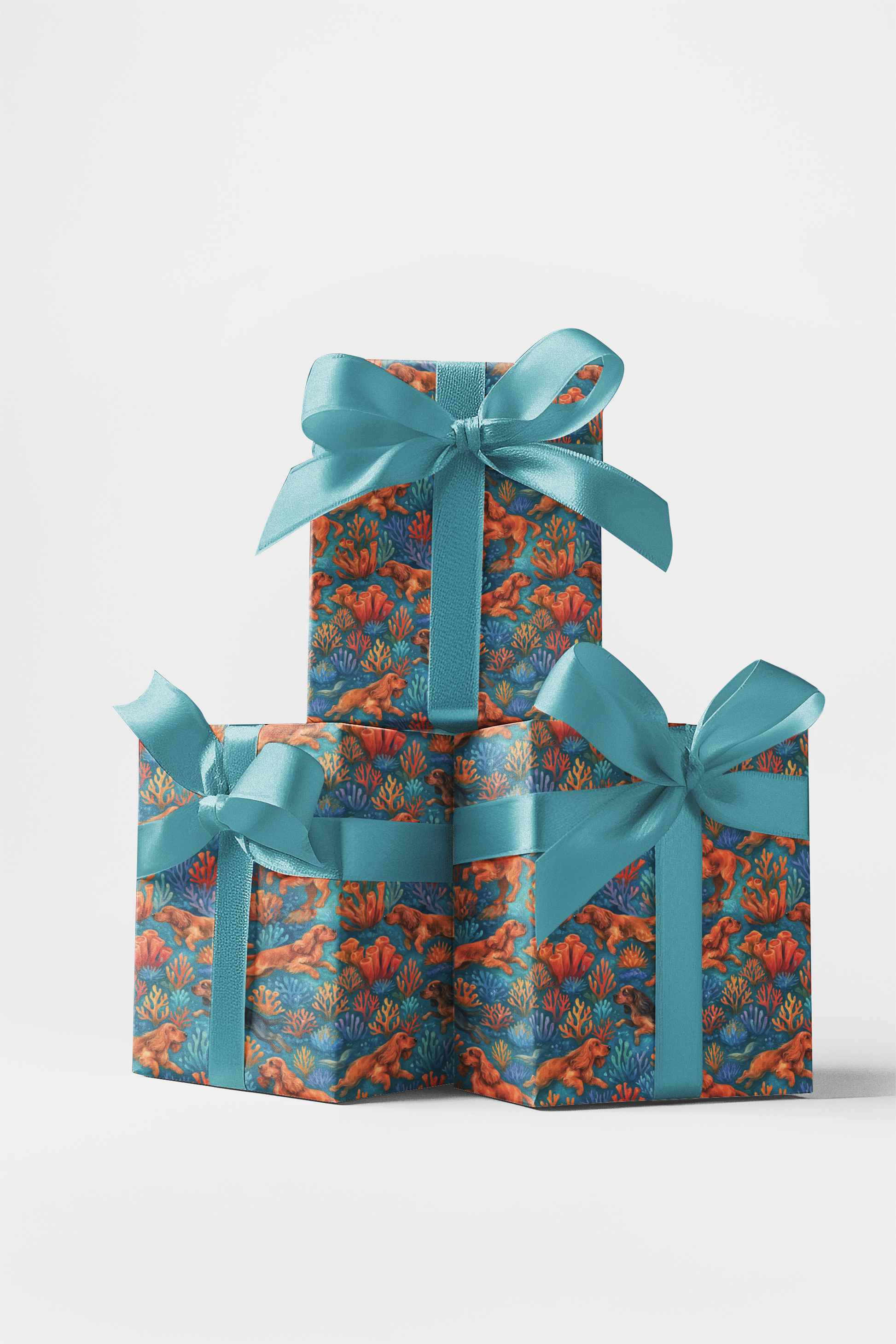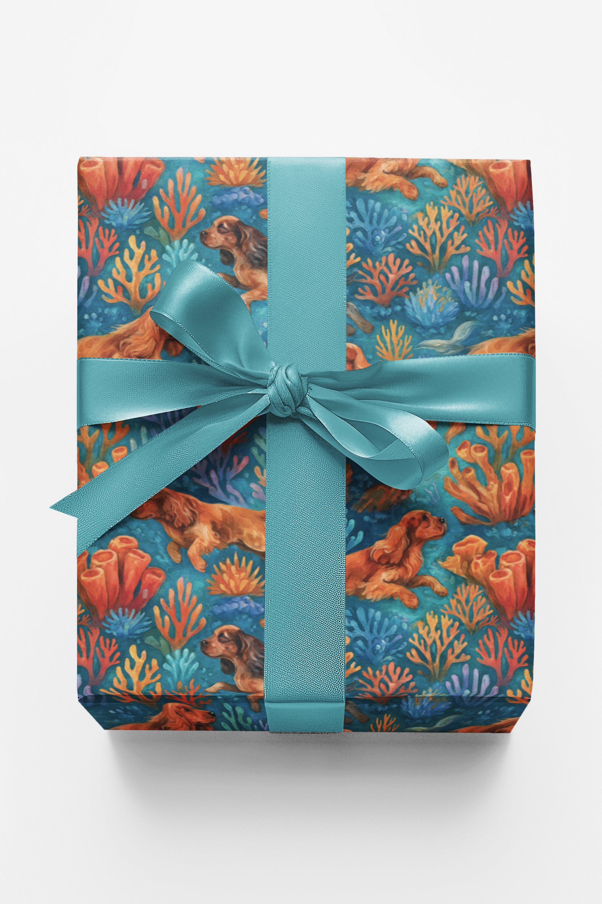 Dive into a world of vibrant color and playful charm with Cocker Coral Reef, a stunning wrapping paper featuring beautifully painted cocker spaniels frolicking amidst vivid coral gardens and turquoise waters. This whimsical underwater scene bursts with personality, balancing artisanal watercolor artistry with bold, saturated hues of ocean blue, coral orange, and golden chestnut. Ideal for birthdays, celebrations, or simply brightening someone’s day, this premium design adds a joyful, imaginative flair to every gift. Pair it with coordinating ribbons in teal, coral, or gold for a polished, unforgettable presentation that delights both giver and receiver.