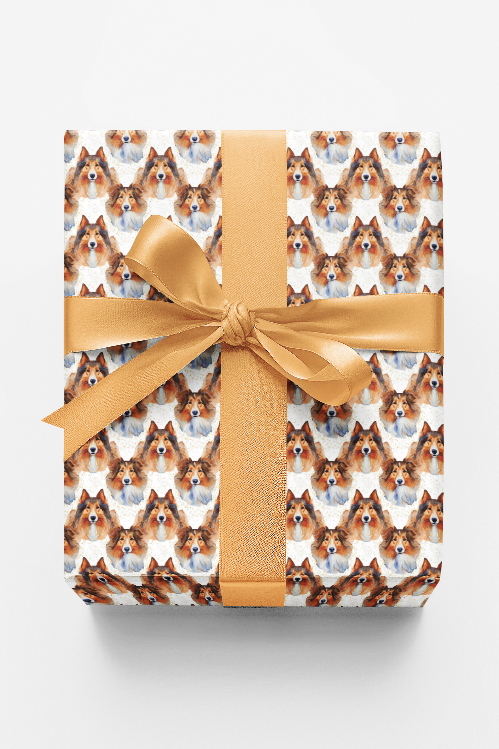 Celebrate intelligence and loyalty with our Collie Grace. This beautifully detailed design features realistic illustrations of Border Collie faces, capturing their expressive eyes, alert ears, and flowing sable-and-white fur. Set against a soft, speckled white background, each portrait highlights the breed’s natural beauty and charm. Perfect for dog lovers, Border Collie enthusiasts, or anyone who appreciates elegant, animal-inspired art, this premium wrapping paper brings warmth, personality, and sophistication to any gift.