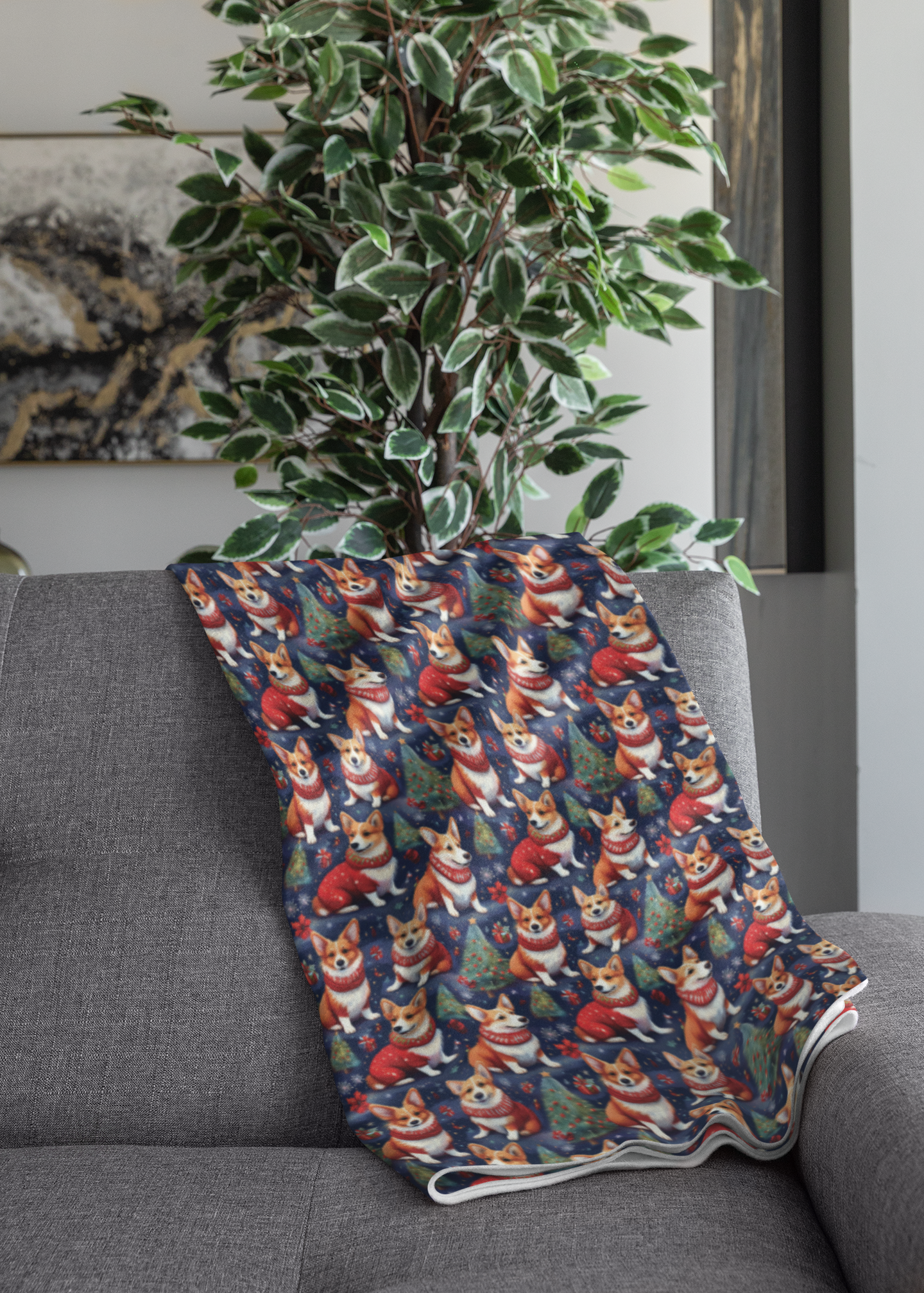 Step into a peaceful winter wonderland with our Corgi Under the Pines Sherpa blanket. This serene design features charming Corgis exploring a quiet forest of snow-dusted pine trees and rustic evergreens, capturing the perfect blend of outdoor adventure and cozy home comfort. Whether you're a nature lover or a dedicated Corgi parent, this blanket brings a touch of cabin-style elegance to your living space. Crafted with a silky-smooth micro-fleece front to showcase the rich forest greens and a lush, cream-colored Sherpa lining on the reverse, it is designed for maximum snuggling. It’s the ultimate gift for anyone who believes that life is better in the woods with a stumpy-legged friend by their side.