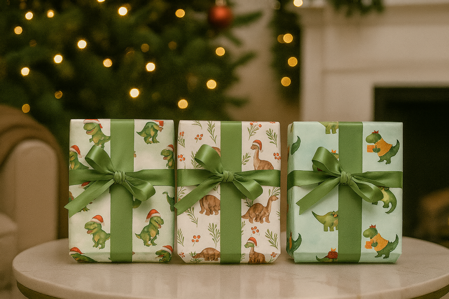 Get our favorite dinosaur holiday designs at 10% off in this convenient bundle!  See all three products included below and select between 6 or 15 feet and glossy / matte finish!