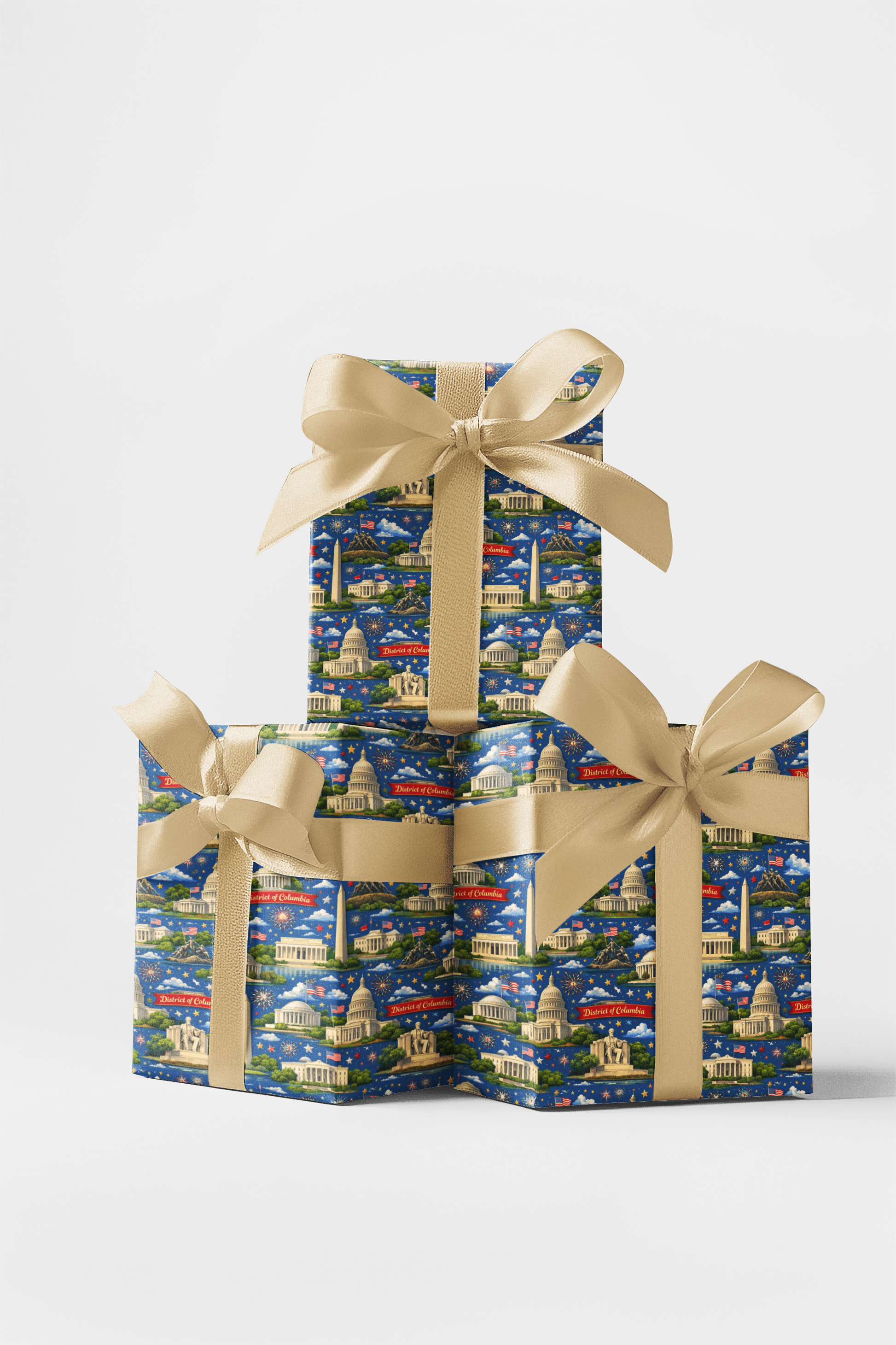 Illuminated by stars and storied landmarks, District of Columbia – Capital Classic captures the dignity and grandeur of the nation’s capital. Iconic monuments rise against a deep blue night sky, framed by flags, domes, and memorials that echo history and unity. This design celebrates tradition, pride, and timeless elegance—where every detail reflects purpose and legacy. Wrapping each gift in patriotic refinement, it carries the enduring spirit of Washington, D.C. in classic, confident style.