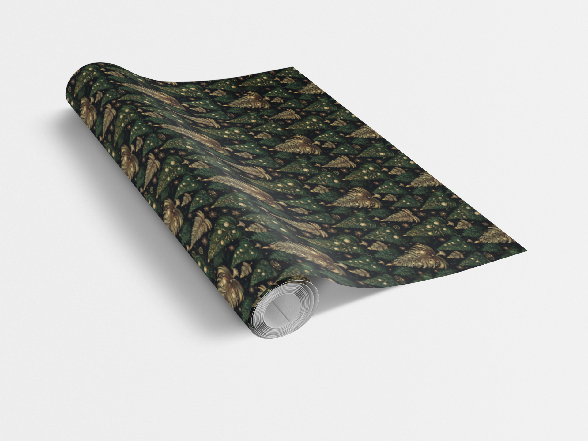 Enchanted Christmas Grove transforms your gifts into treasures beneath a magical forest canopy. With rich emerald tones, ornate golden detailing, and layers of twinkling evergreen trees, this wrap captures the wonder of a timeless holiday night. Perfect for anyone who loves their Christmas wrapped in elegance and enchantment.