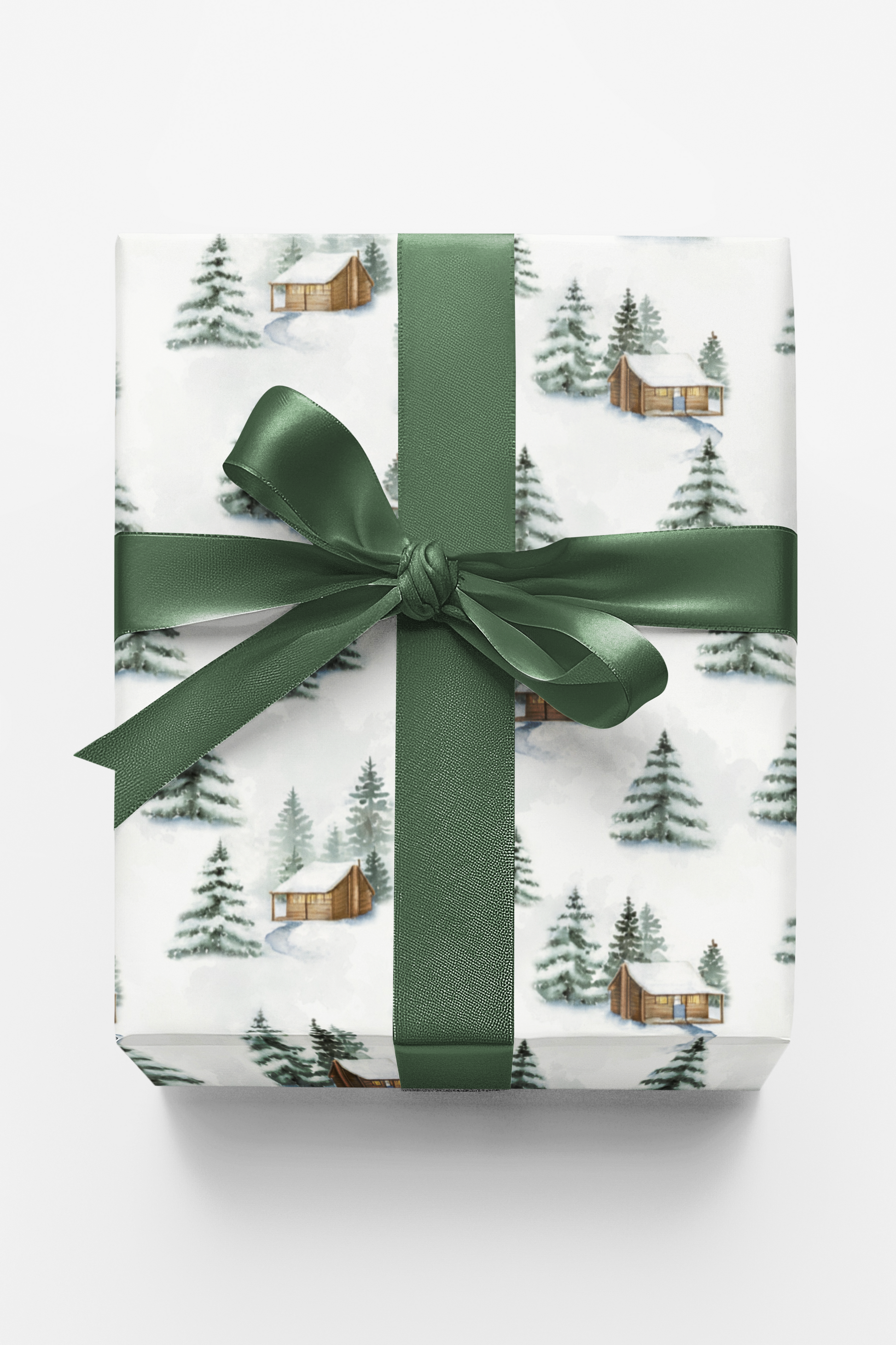 Blanketed in soft snow and kissed by the hush of winter air, Whispering Pines captures the serene poetry of solitude among evergreens. Cozy cabins glow warmly beneath frosted branches, each one a quiet refuge from the chill. Gentle trails wind through pine-covered hills, leading to moments of stillness and reflection. This design celebrates the calm beauty of winter’s embrace—where every fold feels like a breath of crisp mountain air and every gift is wrapped in the timeless peace of a snow-covered forest.