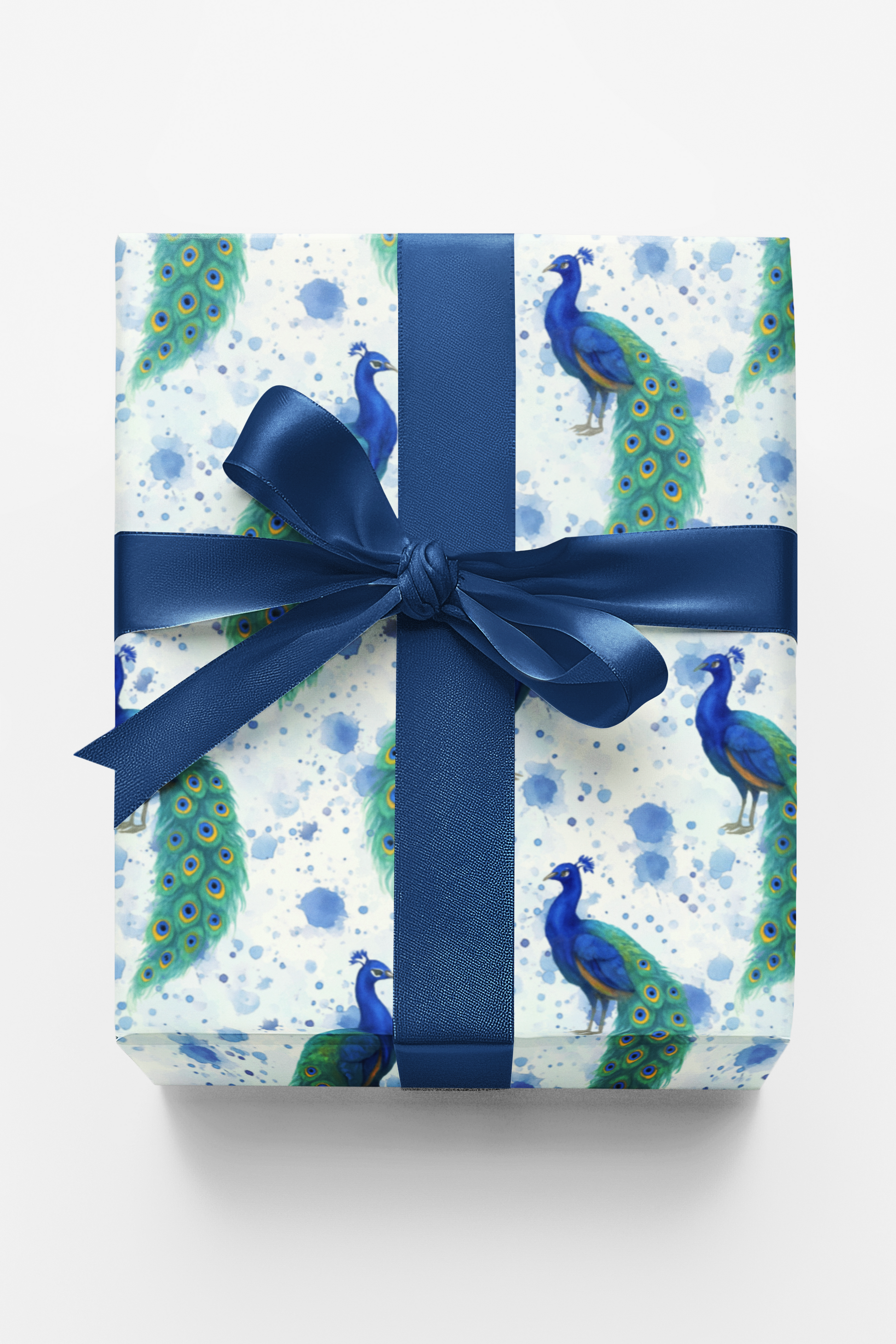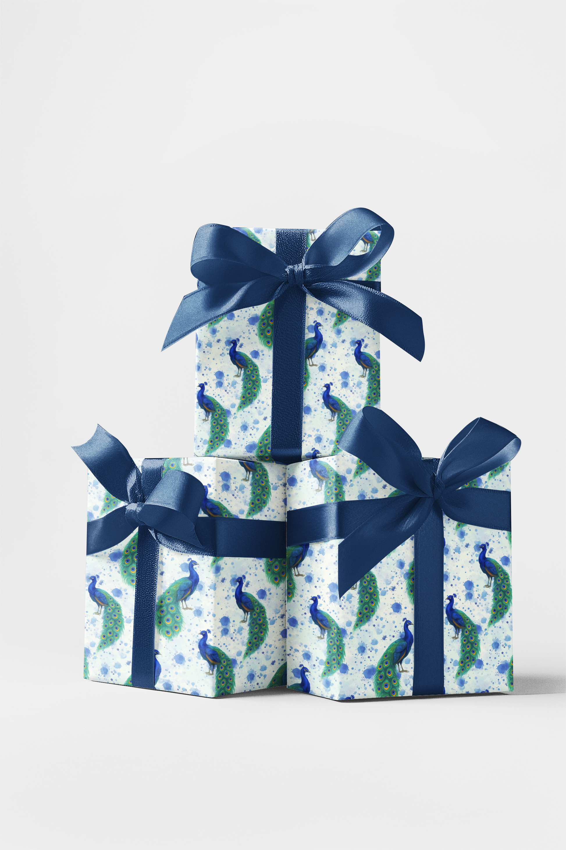 Sophistication with this stunning design of regal peacocks, their shimmering tail feathers cascading in rich jewel tones. Each detail captures the timeless beauty and grace of these magnificent birds, evoking a sense of luxury and refinement. Perfect for elevating any special occasion, this wrapping paper turns every gift into a statement of elegance.