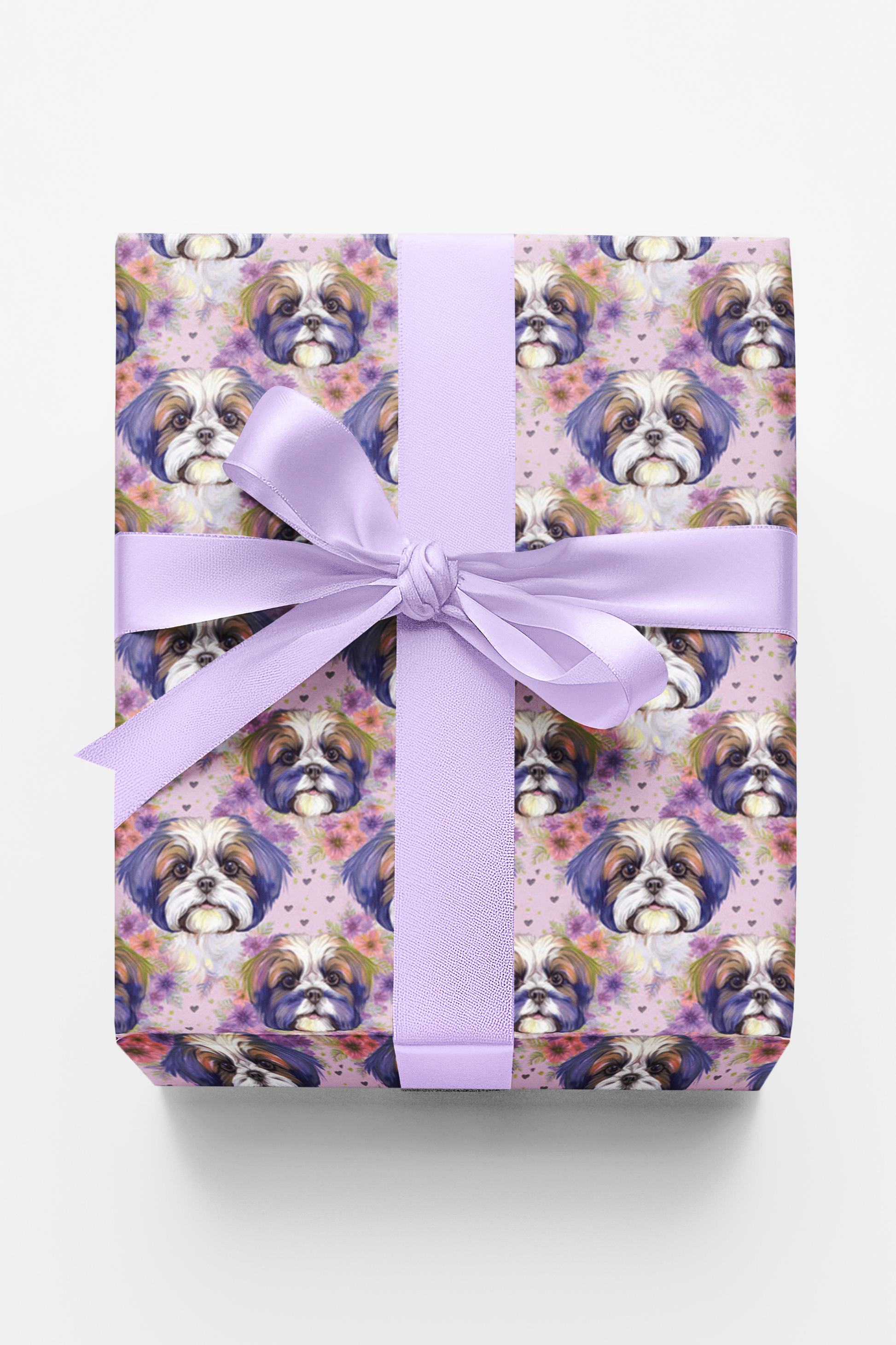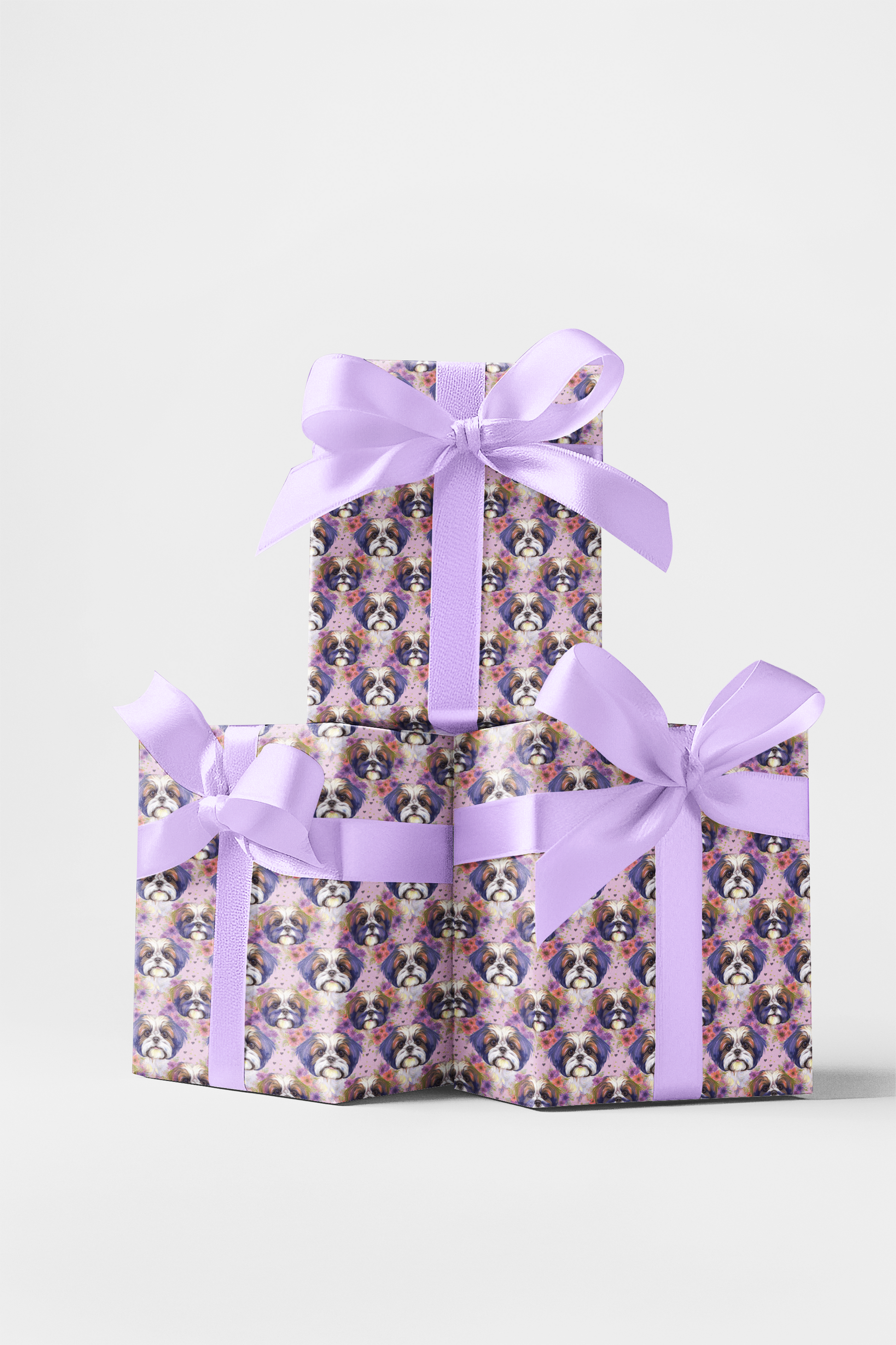 Wrap your gifts with royal charm using the Fluffy Little Royals wrapping paper. This delightful design features adorable Shih Tzus illustrated in soft watercolor tones of cream, brown, and lilac, set against a pastel background sprinkled with tiny hearts. Perfect for dog lovers, this elegant yet playful wrap brings a touch of luxury and sweetness to any celebration. Ideal for birthdays, Mother’s Day, pet lovers’ gifts, or any occasion that calls for a smile.