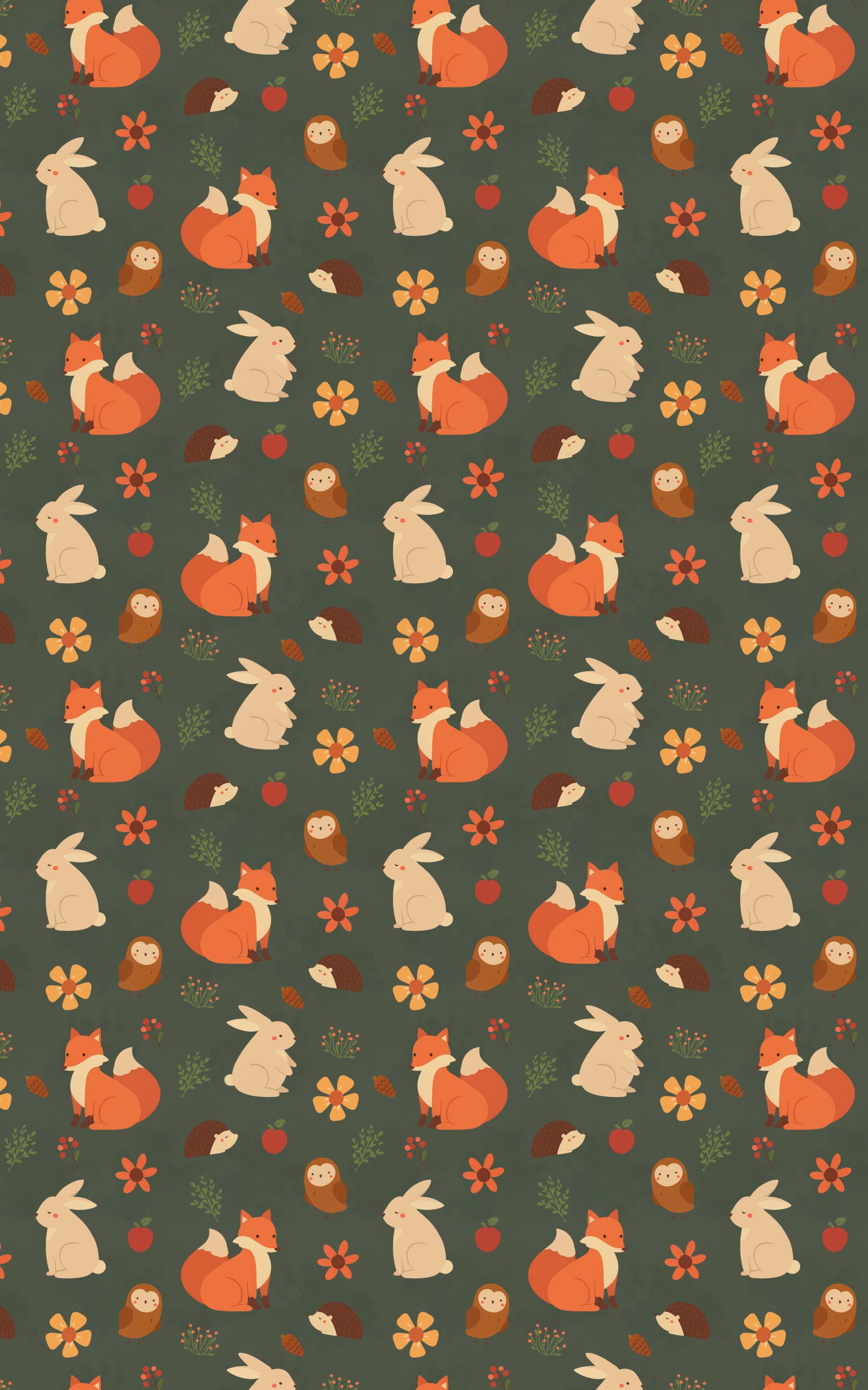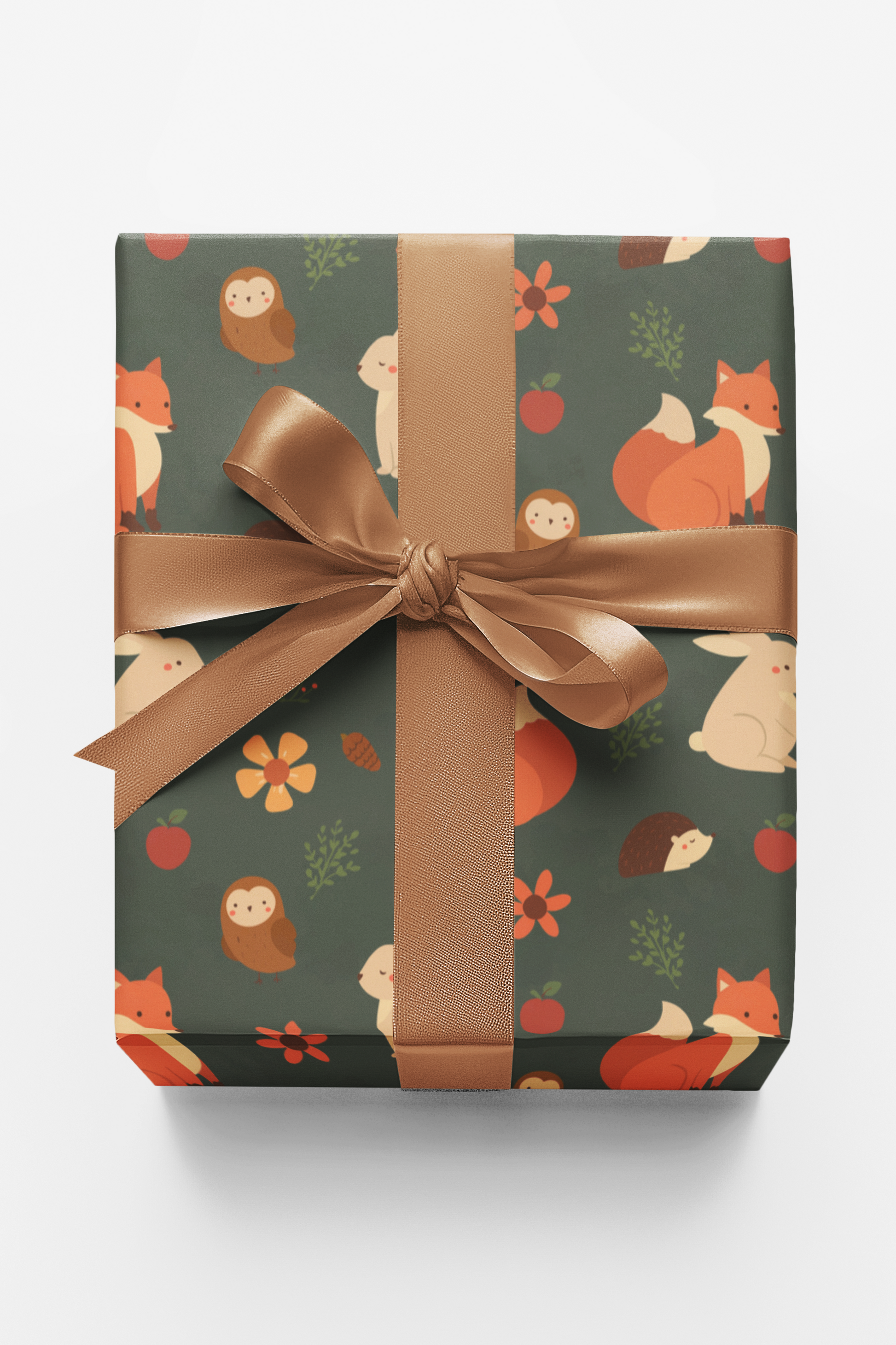 Step into a charming woodland world with this delightful wrapping paper featuring sweet forest animals including foxes, bunnies, owls, and hedgehogs nestled among flowers, berries, and leaves. Illustrated in soft, earthy tones on a deep forest green background, this seamless pattern feels cozy, whimsical, and full of storybook magic. Perfect for birthdays, baby showers, fall celebrations, or everyday gifting, it brings a warm, nature-inspired touch to every wrapped present.