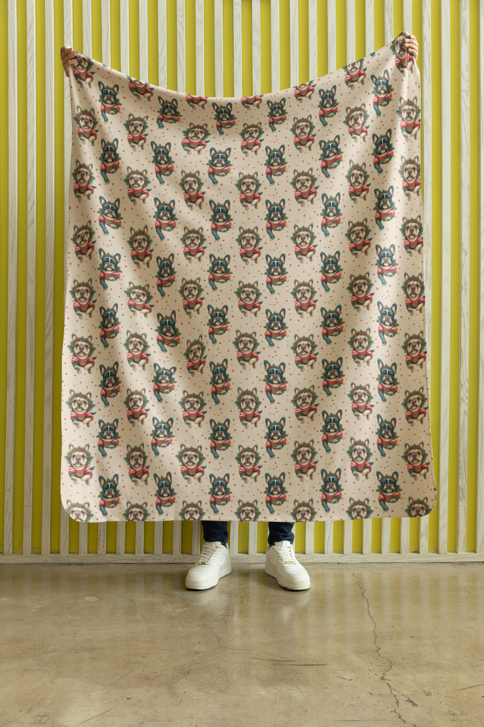 Get ready for the "paw-lidays" with our Frenchies Holiday Sweaters Sherpa blanket. This darling design features a crowd of spirited French Bulldogs all dressed up for the season in their favorite patterned Christmas sweaters and festive holly wreaths. Set against a warm, toasted cream background with delicate red berry accents, this blanket perfectly captures the playful heart of the breed in a sophisticated seasonal style. Crafted with a silky-smooth micro fleece face that highlights the vibrant holiday colors and a plush, cloud like Sherpa lining on the reverse, it is the ultimate accessory for cozying up during winter festivities. Whether draped over your sofa or gifted to a fellow Frenchie enthusiast, this blanket brings a touch of boutique charm and maximum warmth to any home.