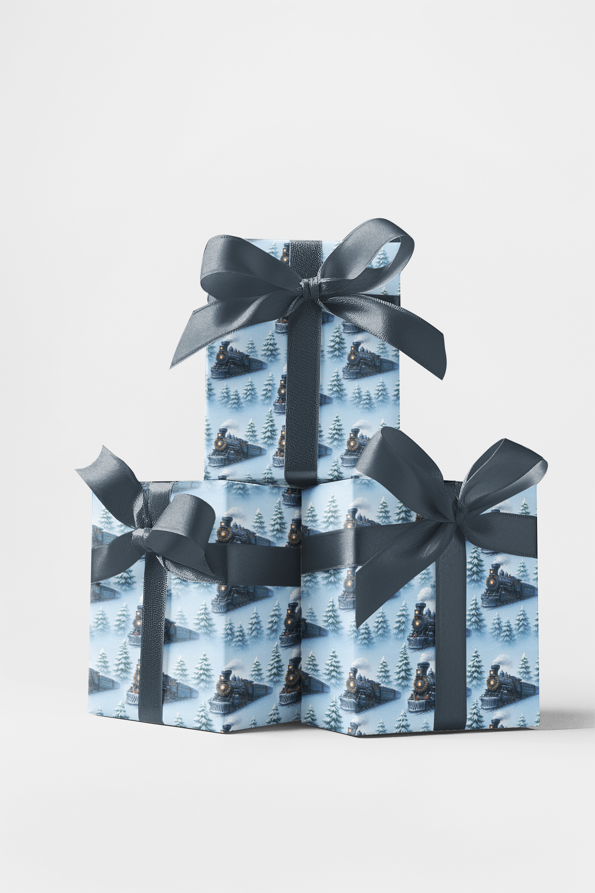 Steaming through a forest of frosted evergreens, Snowbound Express captures the wonder of winter journeys and the magic of Christmas adventure. Its iron wheels gleam beneath a dusting of snow, while golden lights glow warmly against the crisp blue sky. Each fold carries the hush of snowfall and the thrill of anticipation—the promise of arrival, joy, and togetherness. This design celebrates nostalgia and wonder, where every gift feels like a ticket to a storybook winter dream.