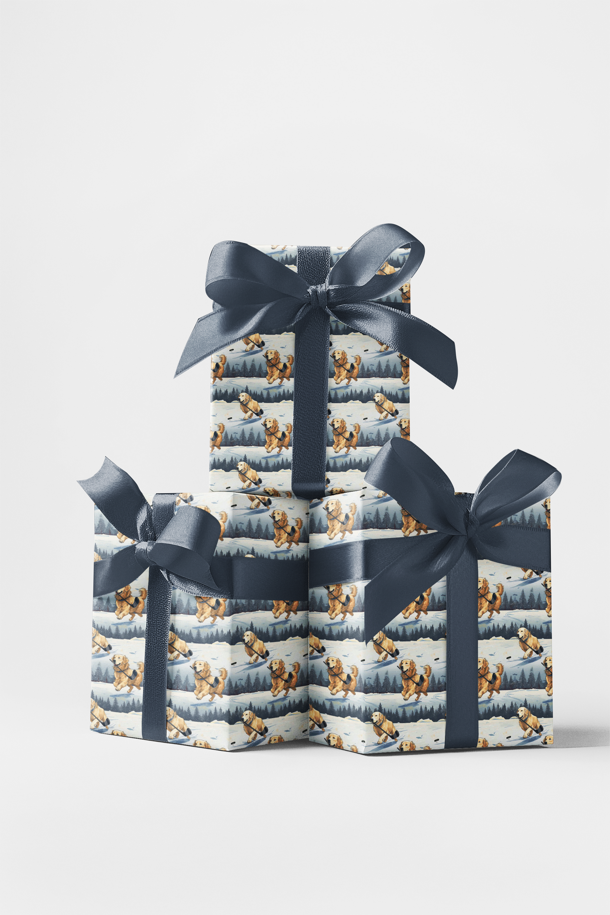 Bring the joy of winter to your gifts with Game On, Goldens! wrapping paper! Featuring playful Golden Retrievers sledding through snowy landscapes with evergreen trees. Perfect for dog lovers, winter fans, or anyone who loves the magic of the season. Pair with matching gift tags for a paw-fect presentation!