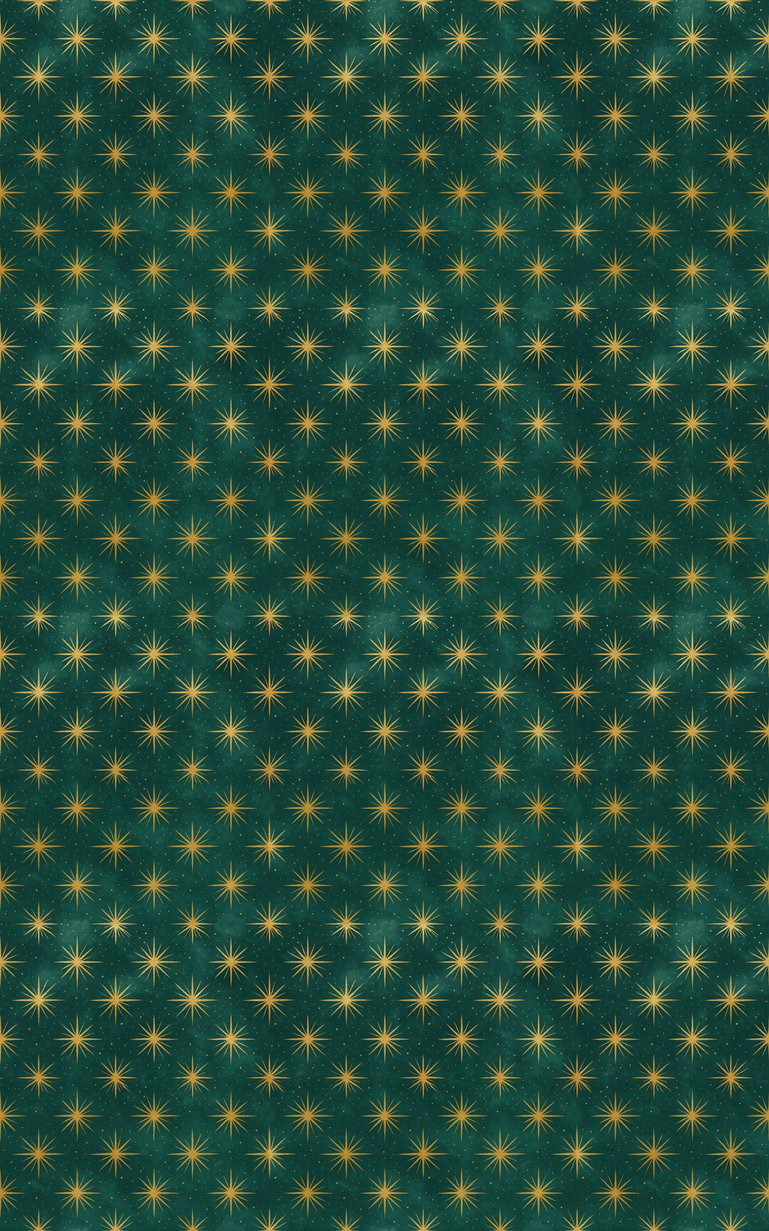 Shimmering like a midnight sky draped in celestial finery, this design radiates with luminous elegance. Golden starbursts ignite against deep, velvety green, each one sparkling as if touched by cosmic light. Glisten & Gold celebrates the magic of brilliance and the quiet power of glow—where every fold feels enchanted, every glance catches a flicker of wonder, and every gift is wrapped in the timeless glamour of a starlit night.