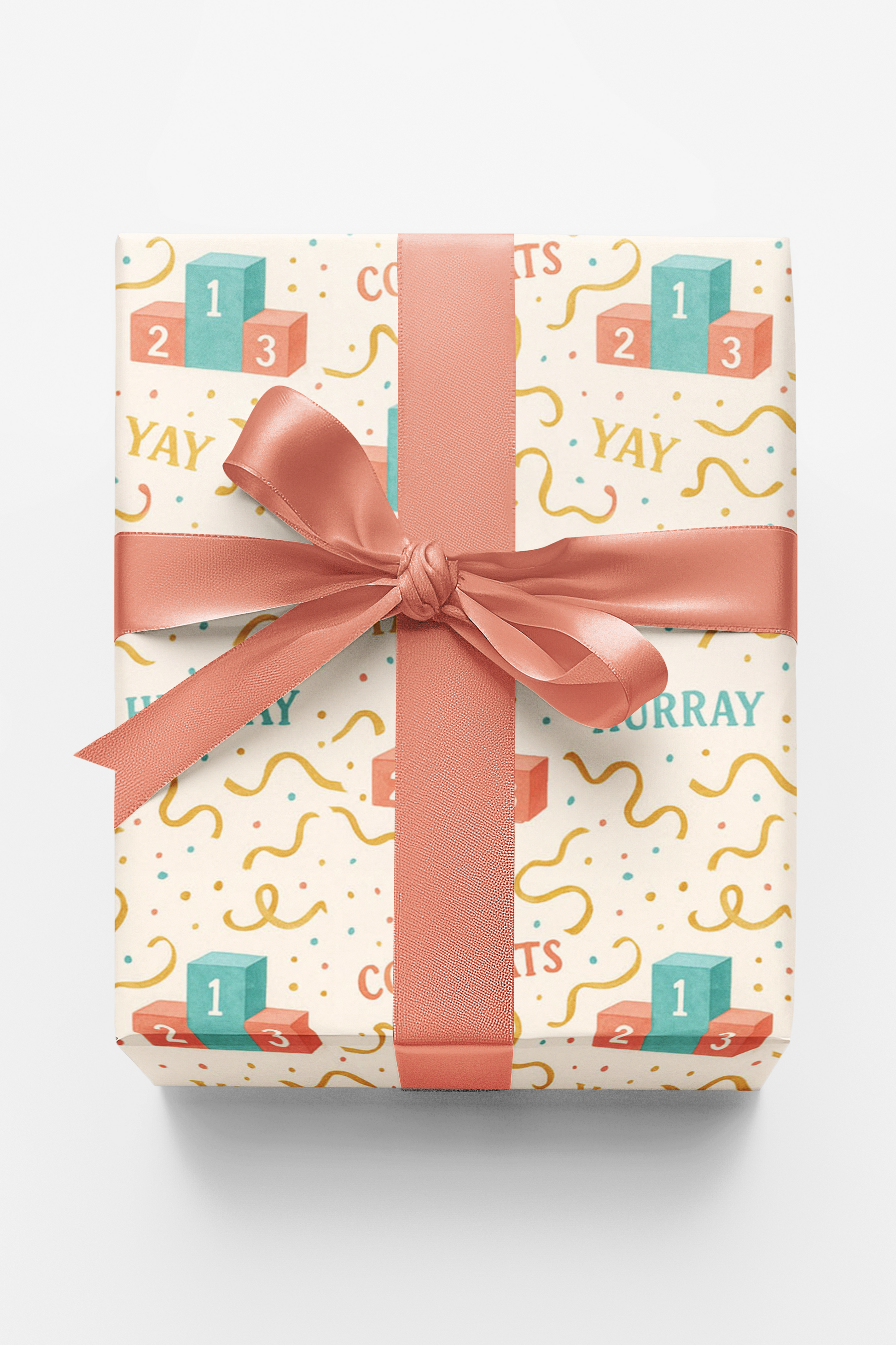 Celebrate every victory with our Gold Medal Moment. Featuring stylized podiums, bursts of confetti, and flowing gold-foil ribbons paired with cheerful celebratory texts, this design captures the spirit of triumph and joy. Perfect for birthdays, achievements, and milestone moments, it brings a festive, uplifting touch to any gift—because every occasion deserves a standing ovation.