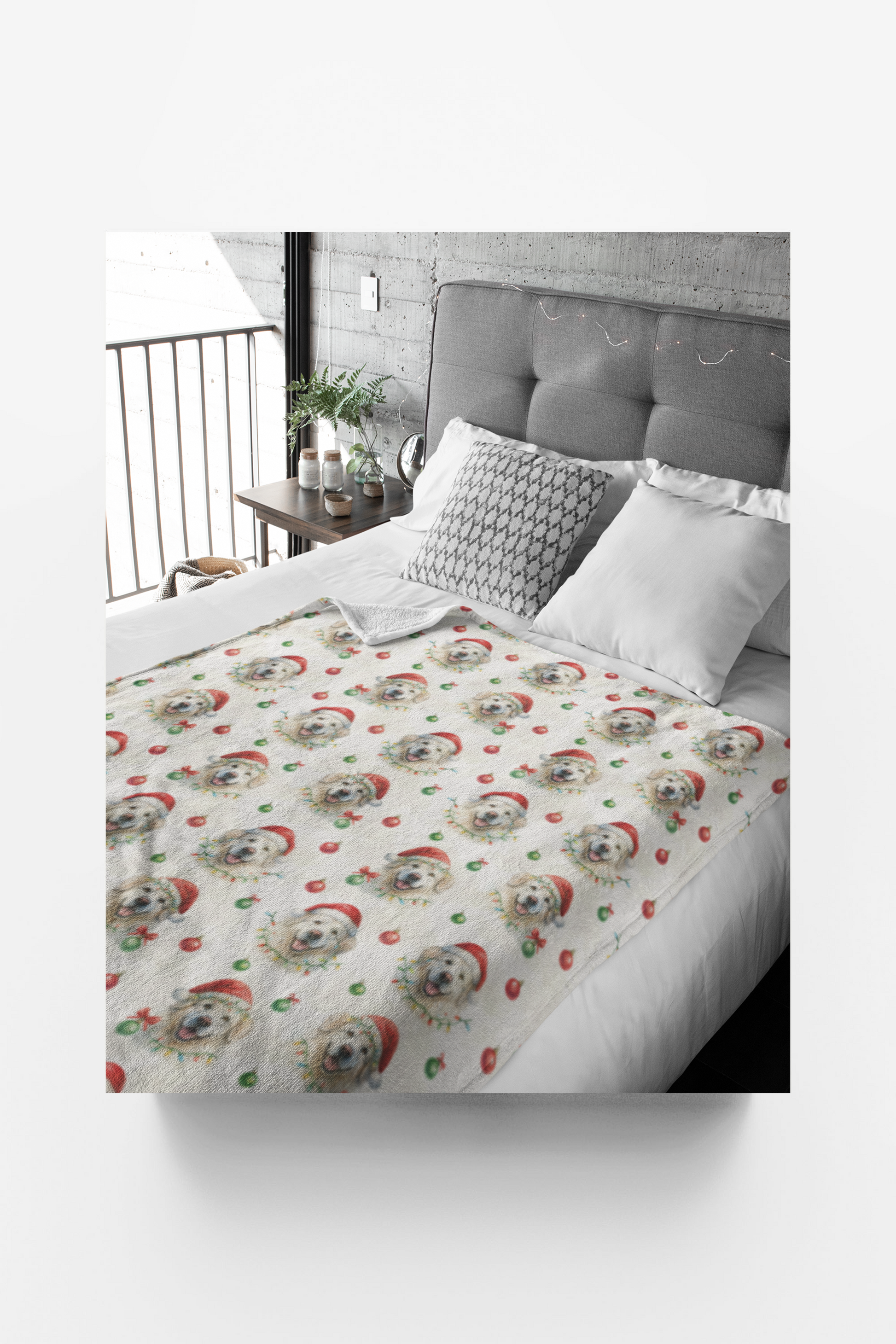 The smooth microfiber fleece front beautifully showcases the cheerful details, while the plush Sherpa backing provides deep, cozy warmth for winter nights. Whether draped over a sofa, layered on a bed, or wrapped around you during quiet evenings, this blanket is designed to bring comfort and happiness into everyday moments. A thoughtful gift for Golden Retriever lovers and holiday enthusiasts alike, it adds a glowing touch of festive joy to any space.