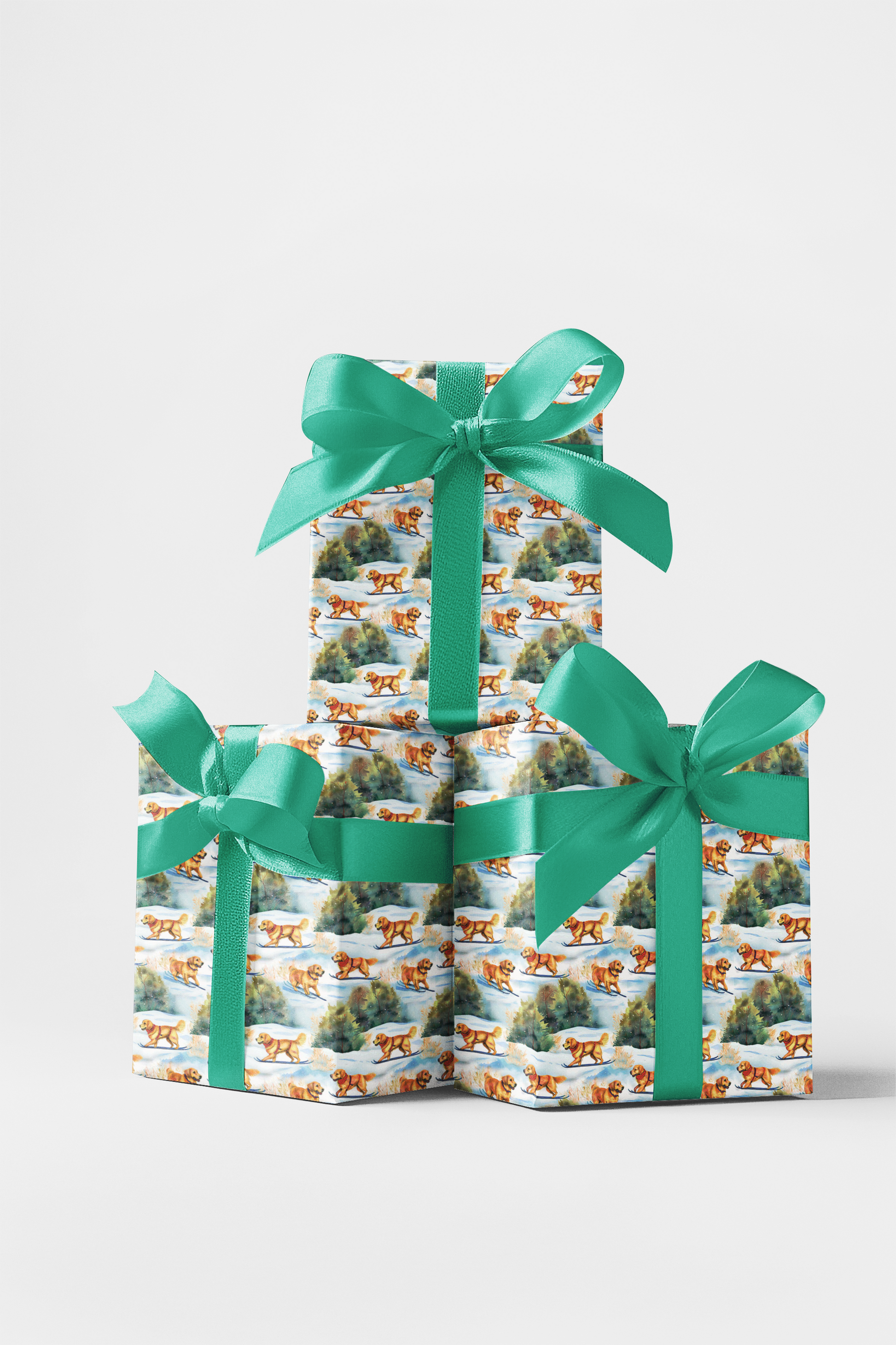 Bring a touch of alpine joy to your gift wrapping with Golden on the Slopes. This playful design features a cheerful Golden Retriever gliding through snowy hills and pine forests, painted in soft watercolor hues. The wintry scene captures the warmth, loyalty, and adventurous spirit of this beloved breed — perfect for dog lovers and winter enthusiasts alike. Ideal for Christmas, winter birthdays, or any cozy seasonal celebration, this wrapping paper wraps your gifts in charm, joy, and a hint of golden sunshine.