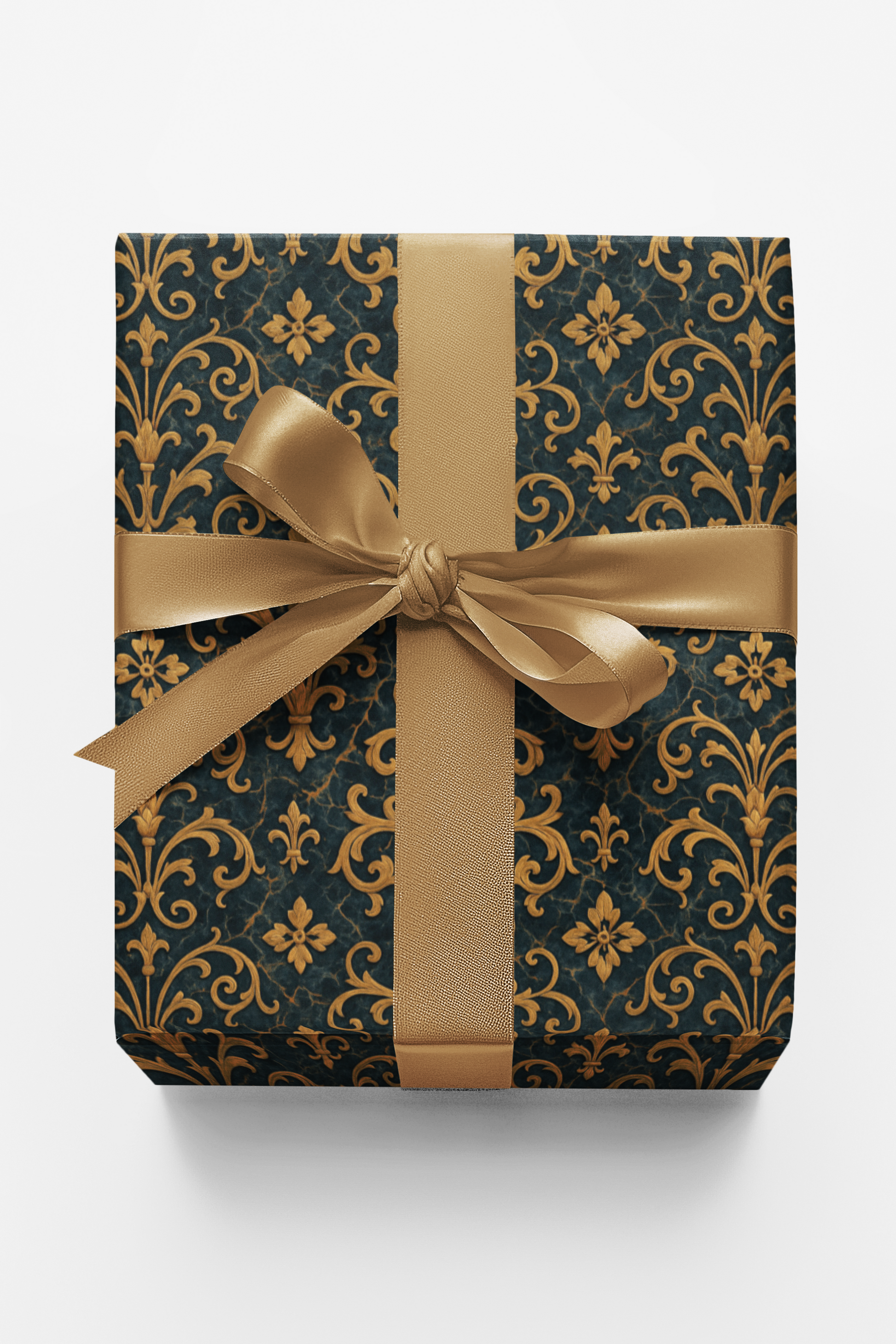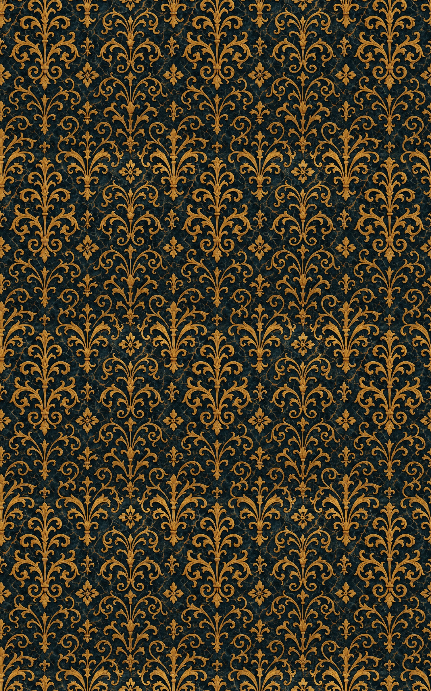 Swirled in regal gold against a deep, shadow-kissed marble, this pattern rises like a chorus of gothic flourishes brought to life. Each graceful curve gleams with the richness of old-world craftsmanship, as though carved by candlelight in a grand cathedral. The design radiates elegance and mystery—where every golden sweep whispers of antiquity, and every dark vein of marble holds the hushed magic of timeless opulence.