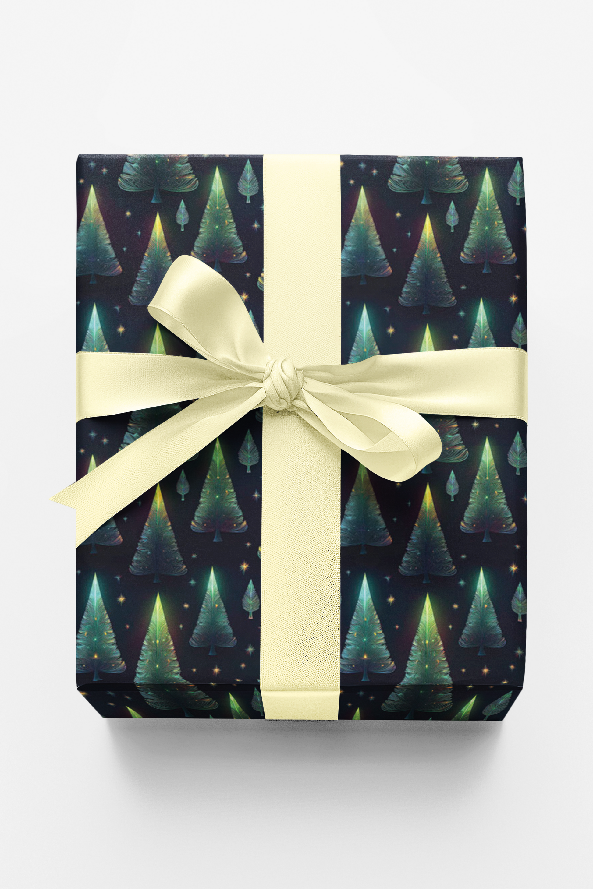 Bring a touch of magic to your gifts with our Graceful Holiday Pines wrapping paper! Featuring glowing Christmas trees against a dark, starry background, this elegant design shimmers with soft greens, blues, and golden lights. Perfect for Christmas or winter celebrations, it’s crafted from high-quality, durable paper to make every gift shine.