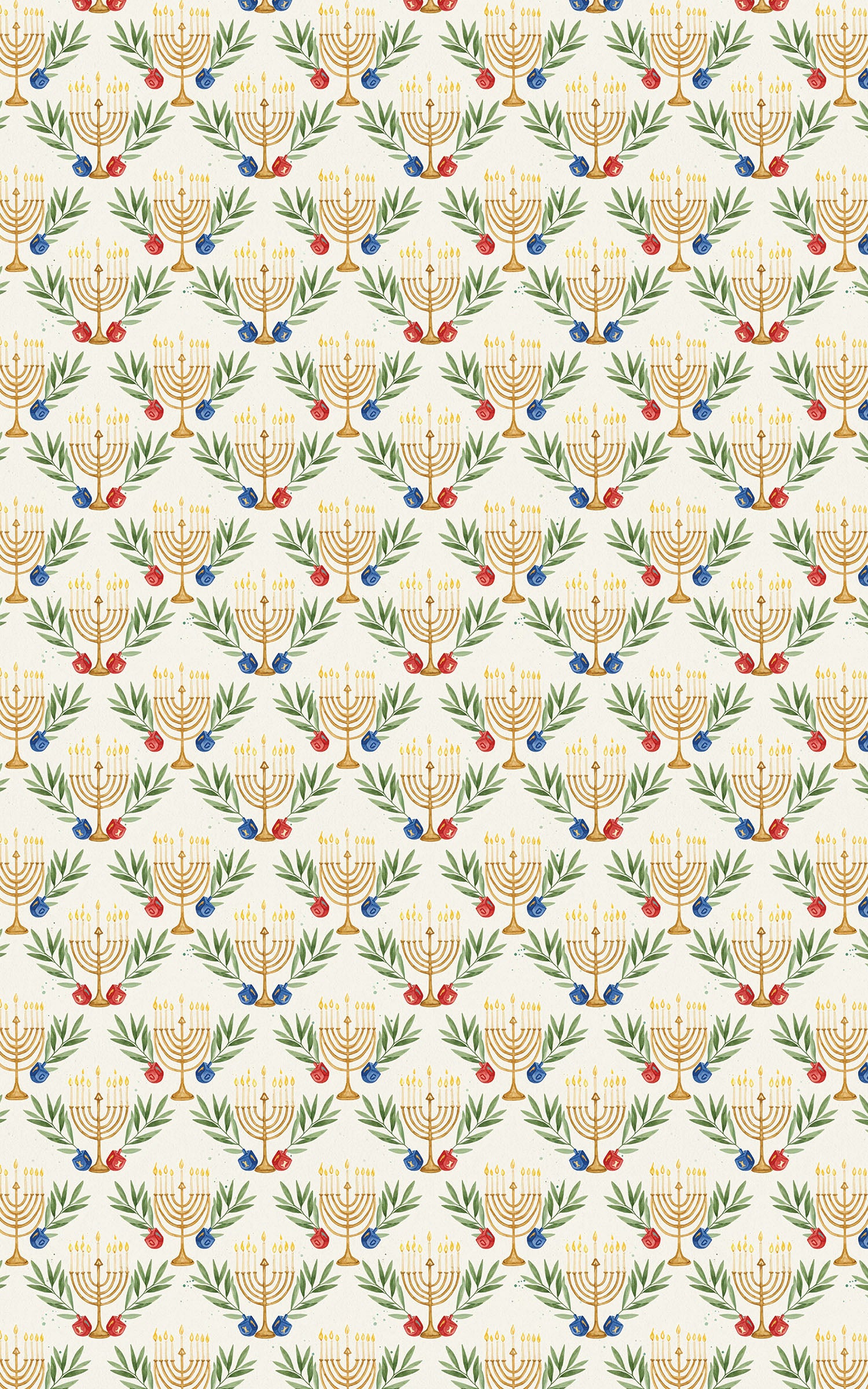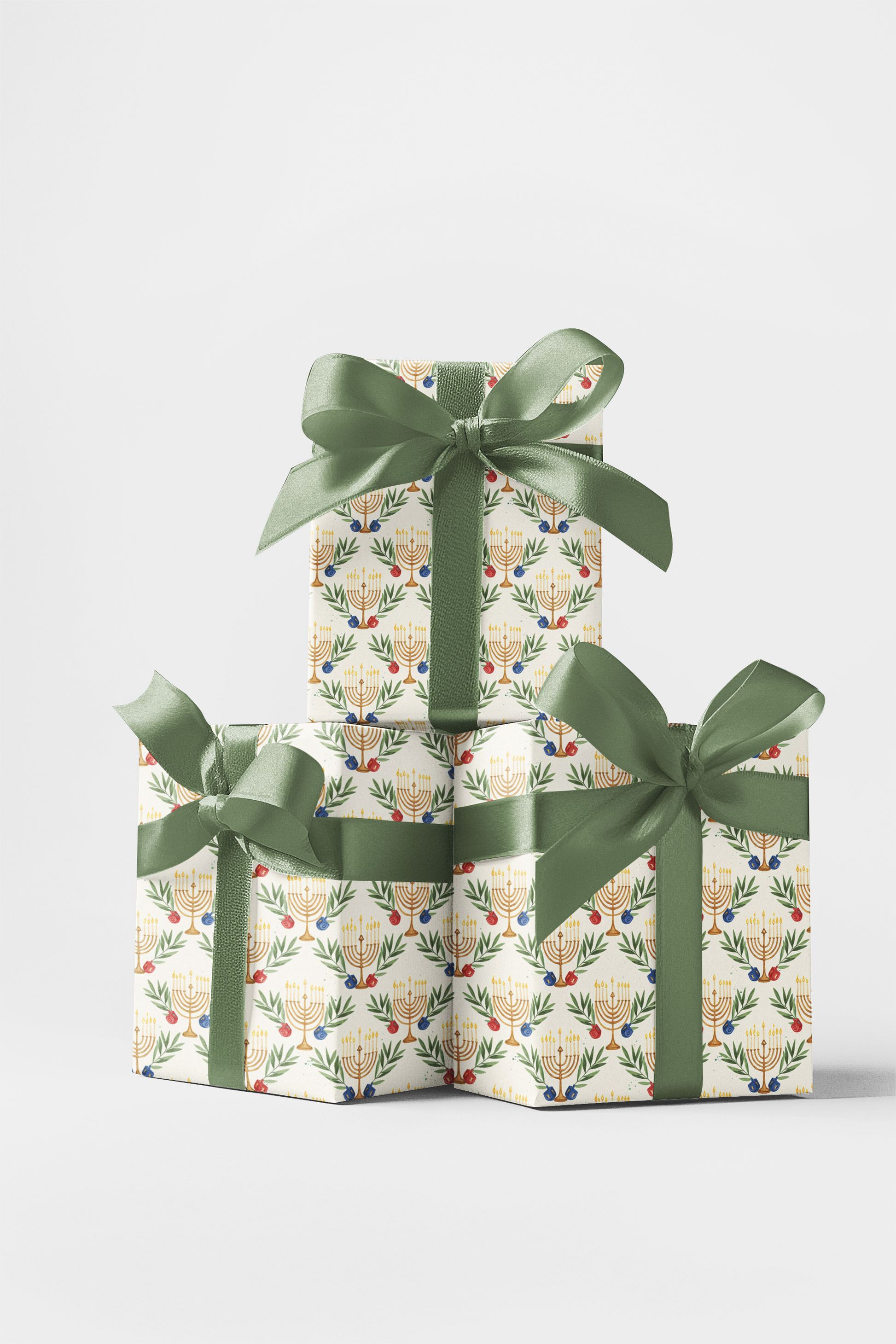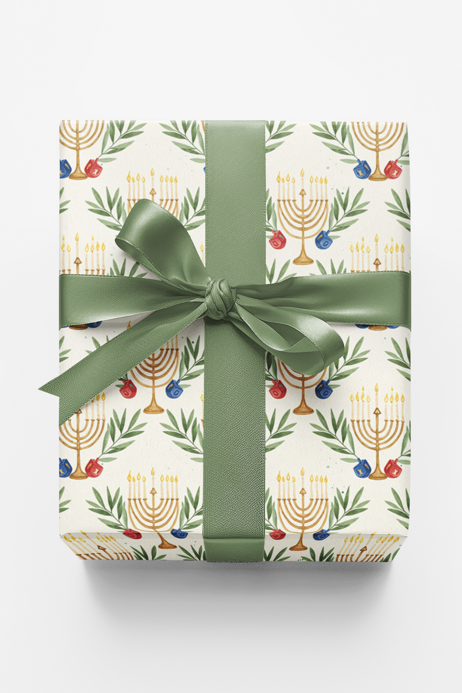 Bring elegance and tradition to your holiday gifting with this graceful design. Subtle watercolor olive branches weave seamlessly with menorahs and dreidels, creating a harmonious blend of nature and celebration. Soft and timeless, this wrapping paper is perfect for adding a meaningful touch to your Hanukkah presents.