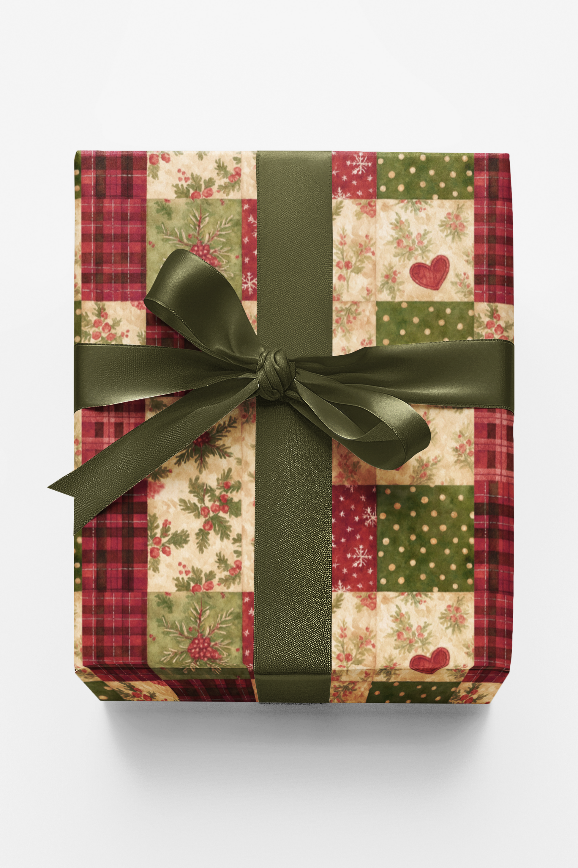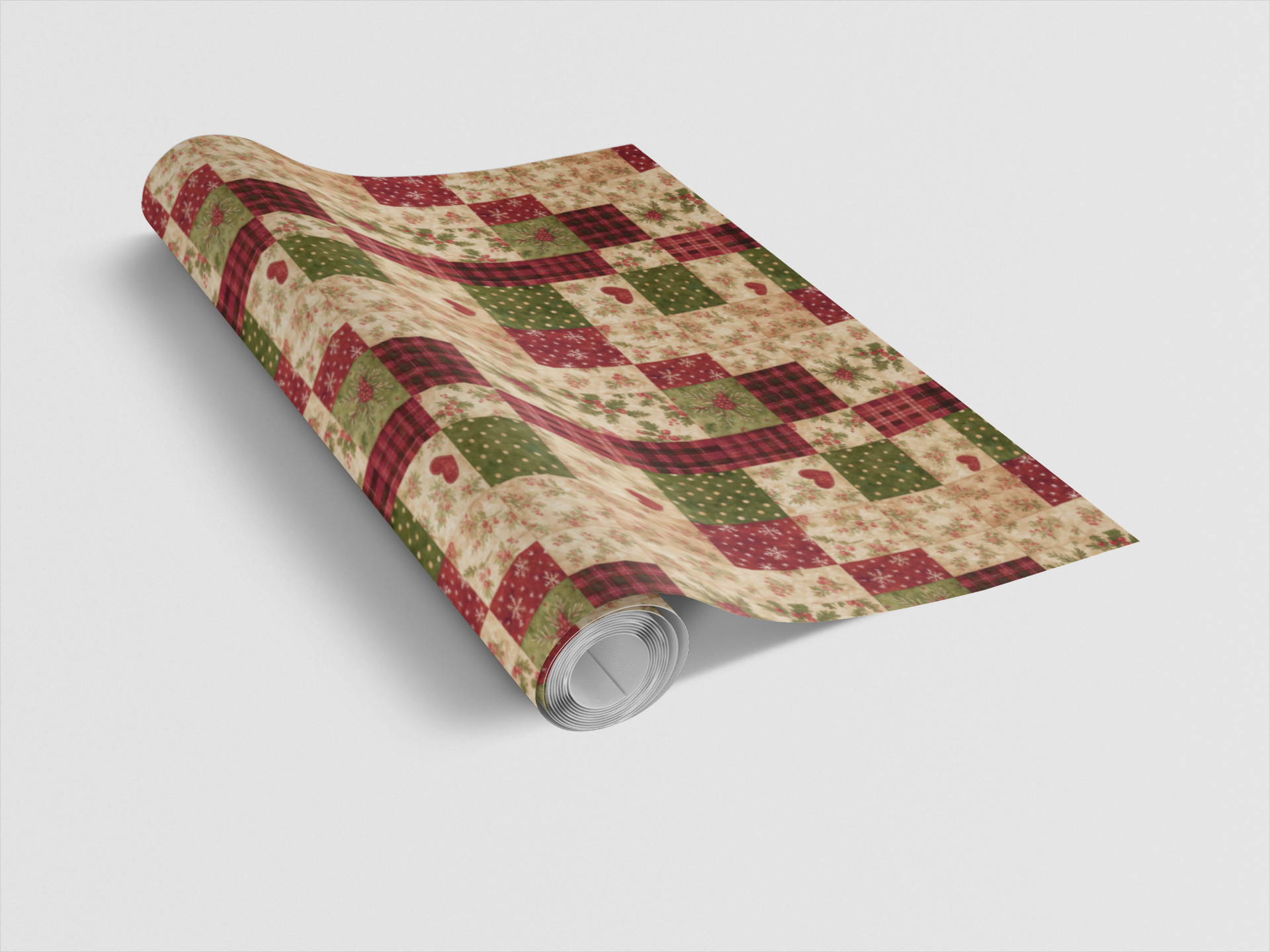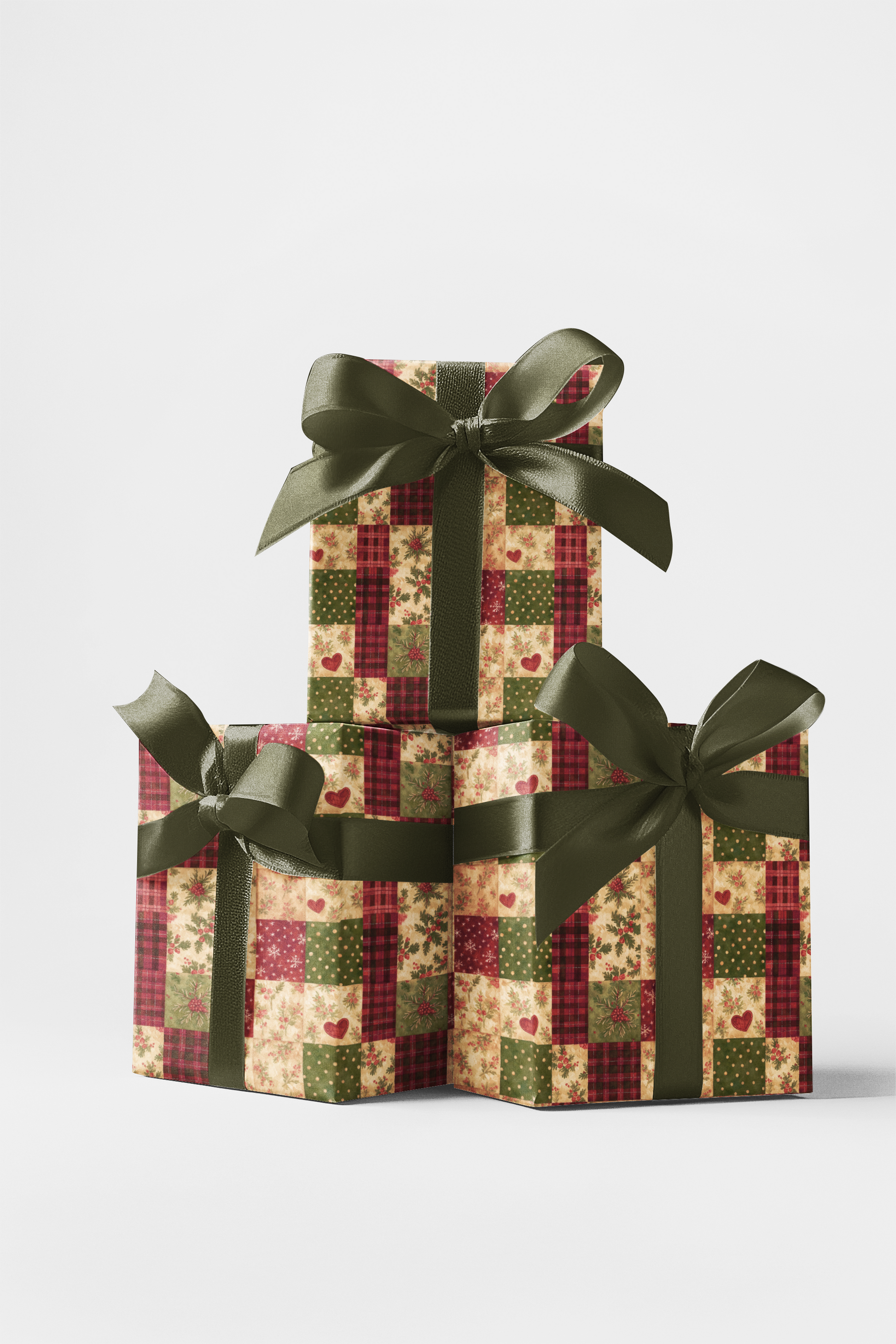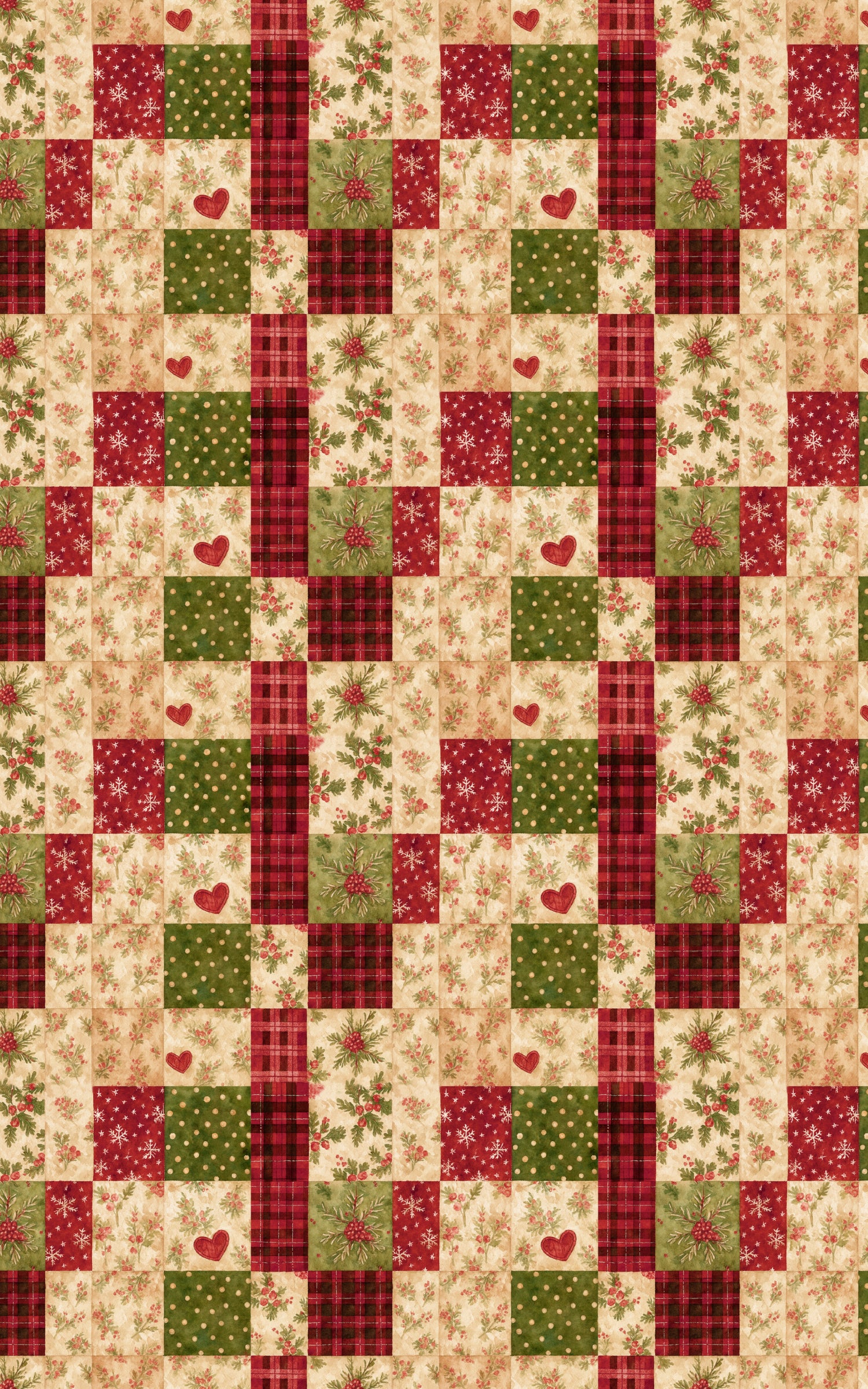 Wrapped in the warmth of the holidays, Holly Hearth Patchwork captures the spirit of a fireside Christmas morning. Each square tells a story — from golden polka dots that glimmer like candlelight, to hearts that beat with cozy affection, to sprigs of holly that whisper winter’s cheer. Woven with rustic plaids and timeless florals, this design feels like a handmade quilt of nostalgia and joy. Every fold carries the scent of pine, the sound of laughter, and the comforting glow of home — a celebration of love stitched into every corner.