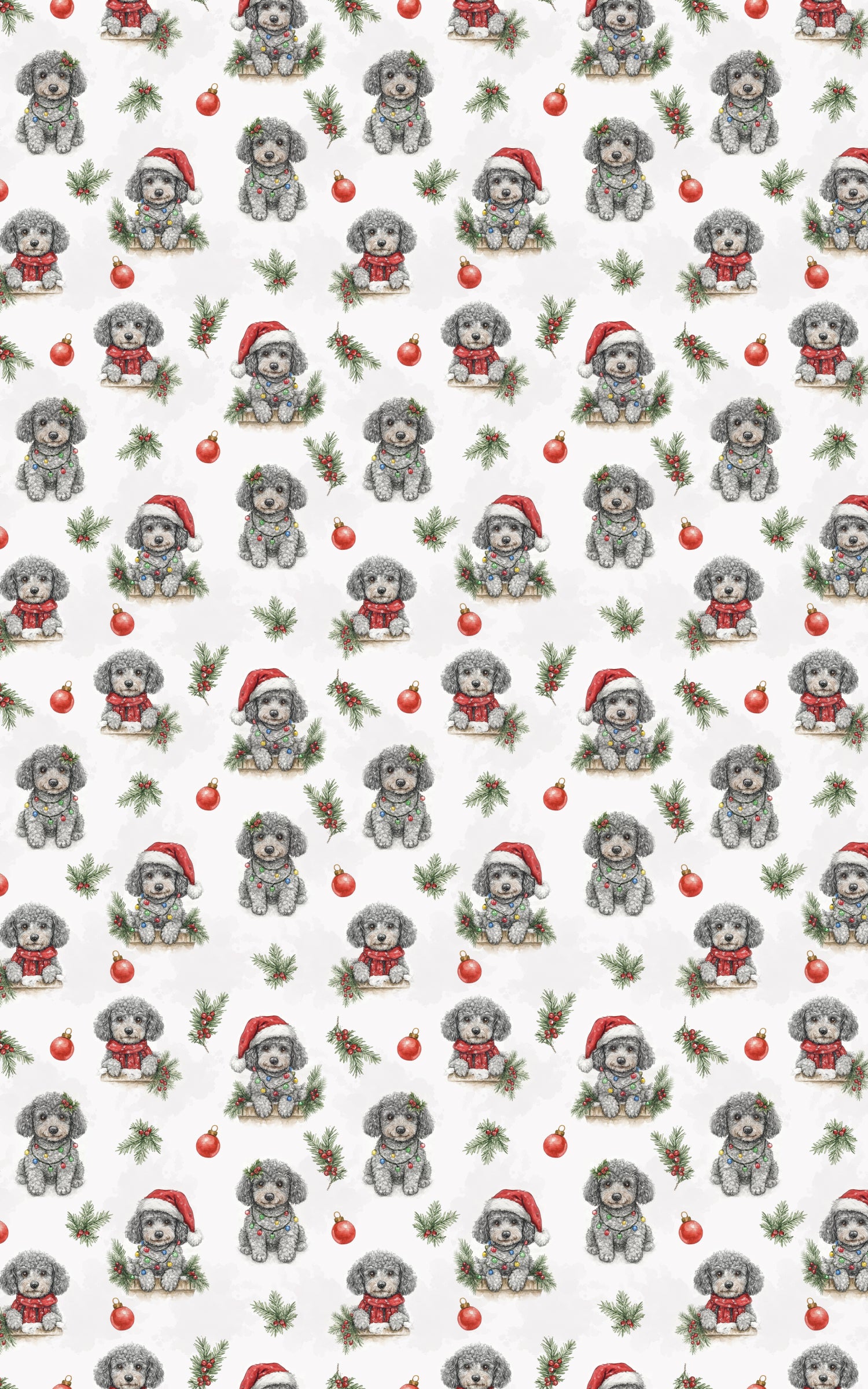 Curled in warmth and dressed in holiday style, this poodle sparkles with joy in a Santa hat, cozy scarf, and twinkling lights. Gentle and sweet, it brings a touch of elegance to the season—where every pawprint feels like love and every gift is wrapped in festive charm. This design celebrates companionship, warmth, and the timeless magic of a Christmas shared with a loyal friend.